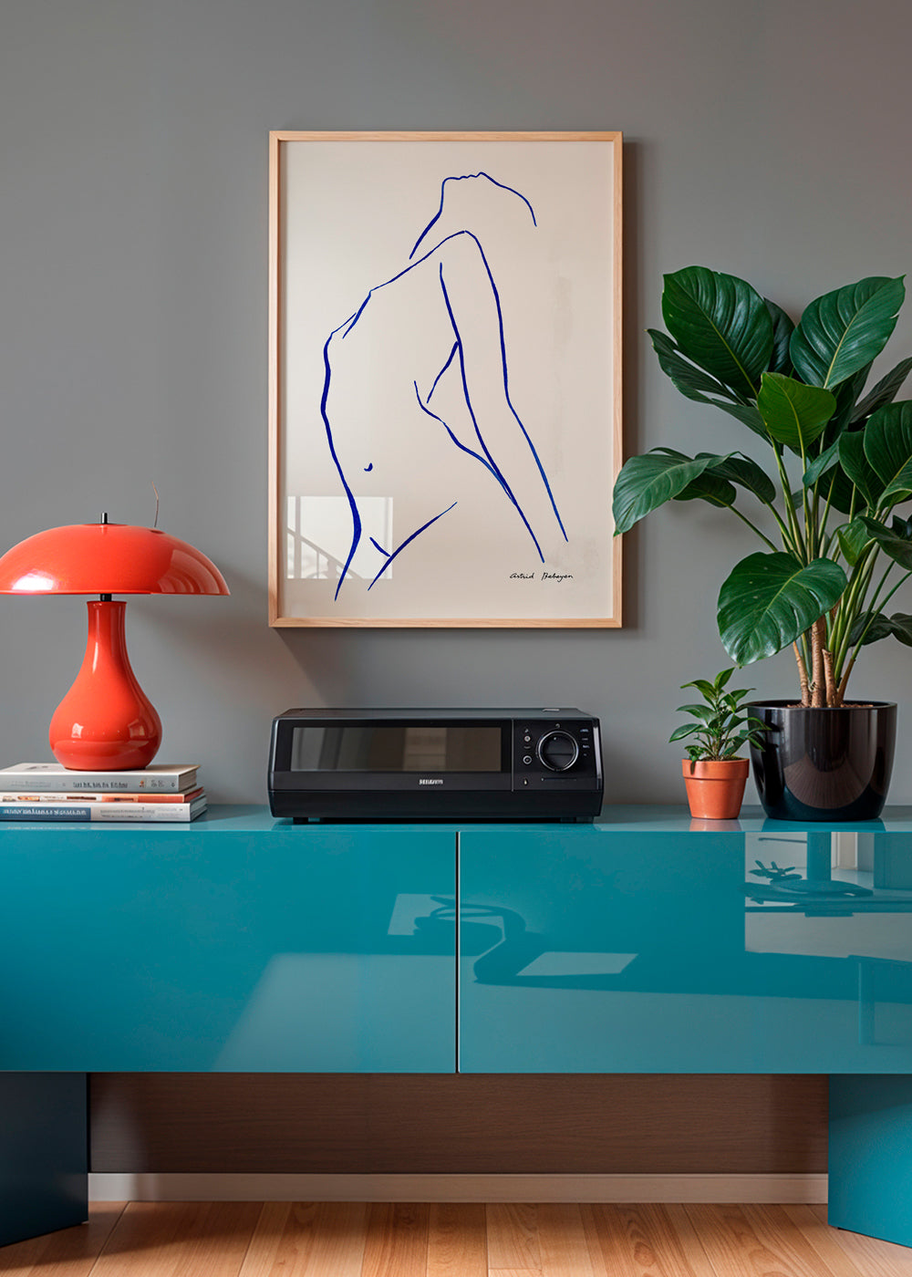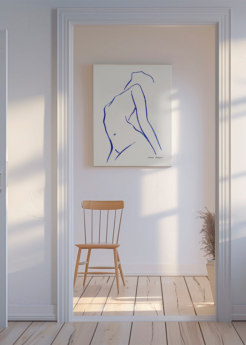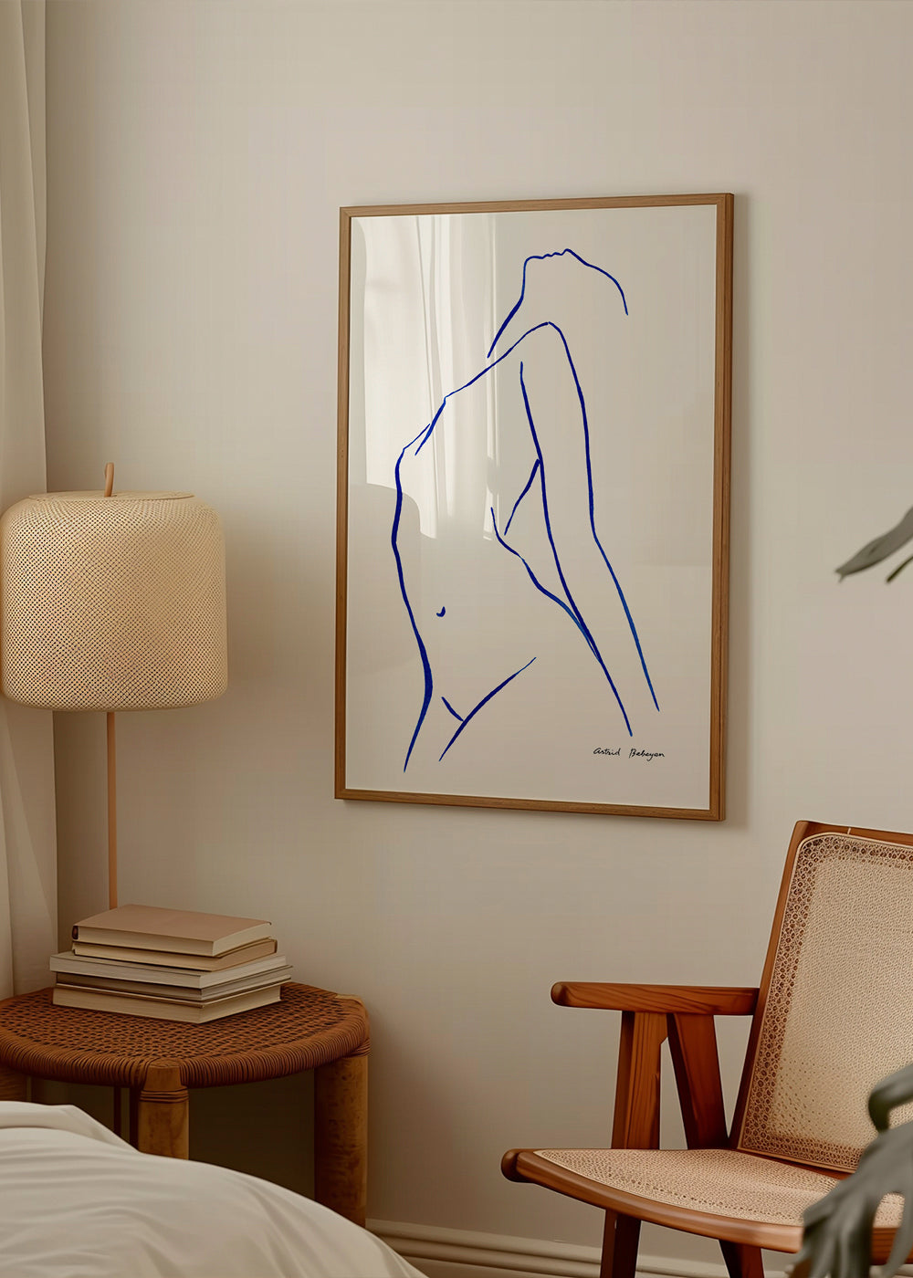 Beau poster de notre collection tableaux de lignes, de l'artiste Astrid Babayan, avec des nuances de tons bleus, et en portrait. Les tableaux avec illustrations sont parfaits pour être combinés avec l'art minimaliste et abstrait. Un mur vide est une toile qui doit être peinte.