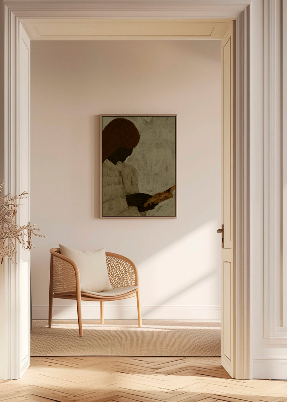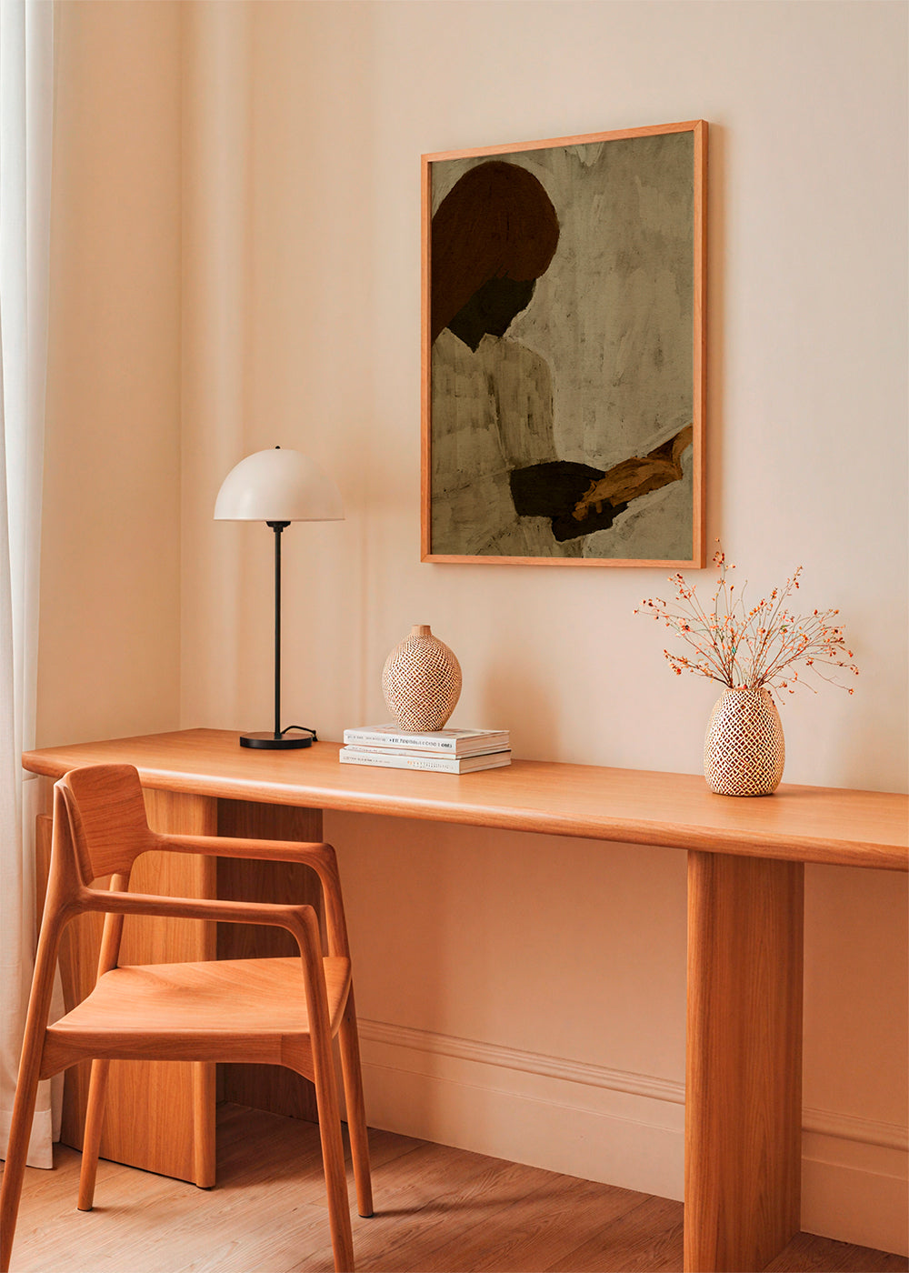 Un poster de la collection posters femme, faite par Shatha Dafai, avec des nuances de couleurs gris, et en portrait. C'est une illustration de style simple et propre, combinez-la avec d'autres illustrations pour obtenir une composition artistique. Créez de petits espaces remplis d'art.