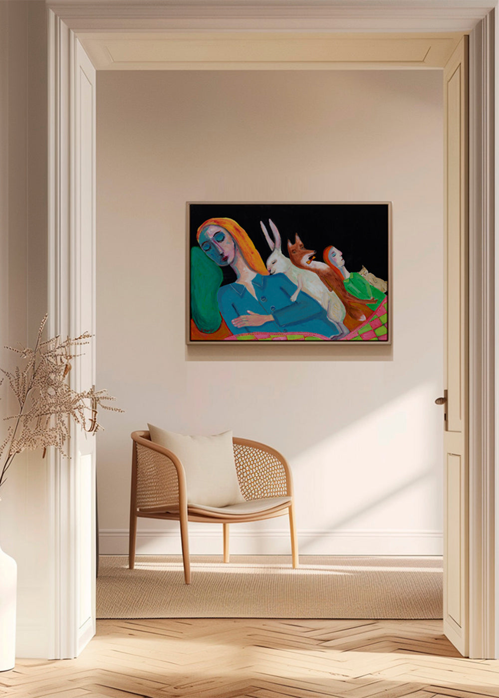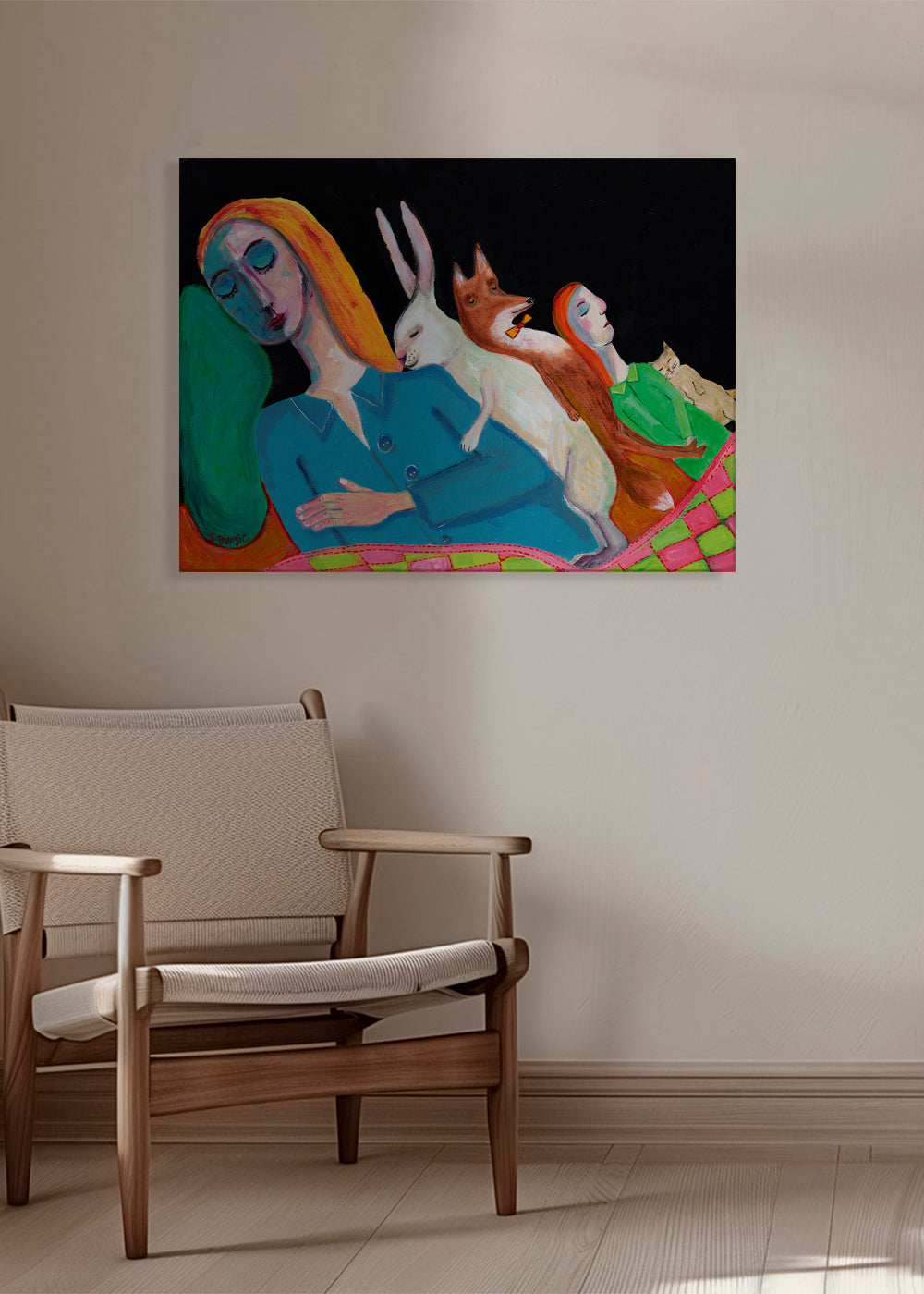 Beau tableau de notre répertoire posters femme, de 1x, avec pigments multicolores, et en format paysage. Une œuvre idéale pour les amoureux des animaux. Combinez-la avec d'autres tableaux d’animaux pour créer une merveilleuse composition. Des murs pleins de créativité.