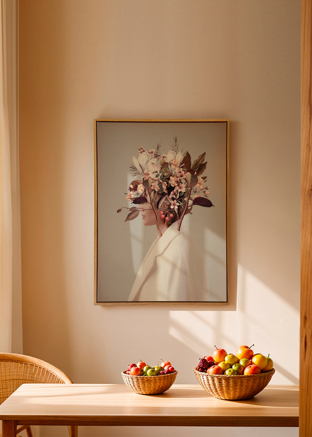 Si vous sélectionnez l'option passe-partout, nous ajouterons le tableau blanc mat au cadre, et nous réduirons le dessin de l'œuvre. Par exemple, si vous sélectionnez un tirage au format 50x70 cm, avec un cadre et un passe-partout couleur chêne, nous réduirons le dessin du tirage au format précédent (40x50cm). Ainsi, il s'adaptera parfaitement à la fenêtre intérieure du passe-partout.