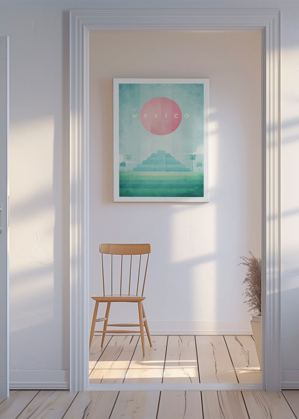 Le passe-partout est un panneau blanc mat qui entoure l'affiche pour la protéger du méthacrylate, et qui améliore également l'expressivité de l'œuvre et met en valeur ses détails.