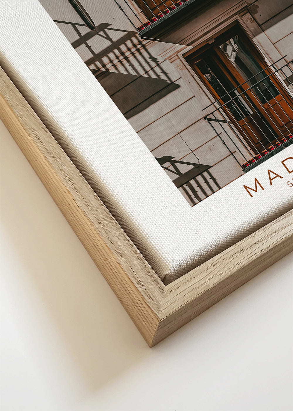 Tous nos cadres sont fabriqués en Espagne. Les cadres blanc, noir et chêne sont en bois d'Ayous, et ceux en chêne sont plaqués en chêne, tandis que les métalliques sont en aluminium.