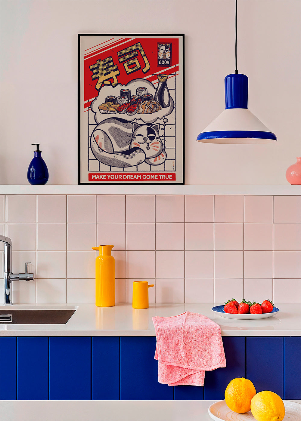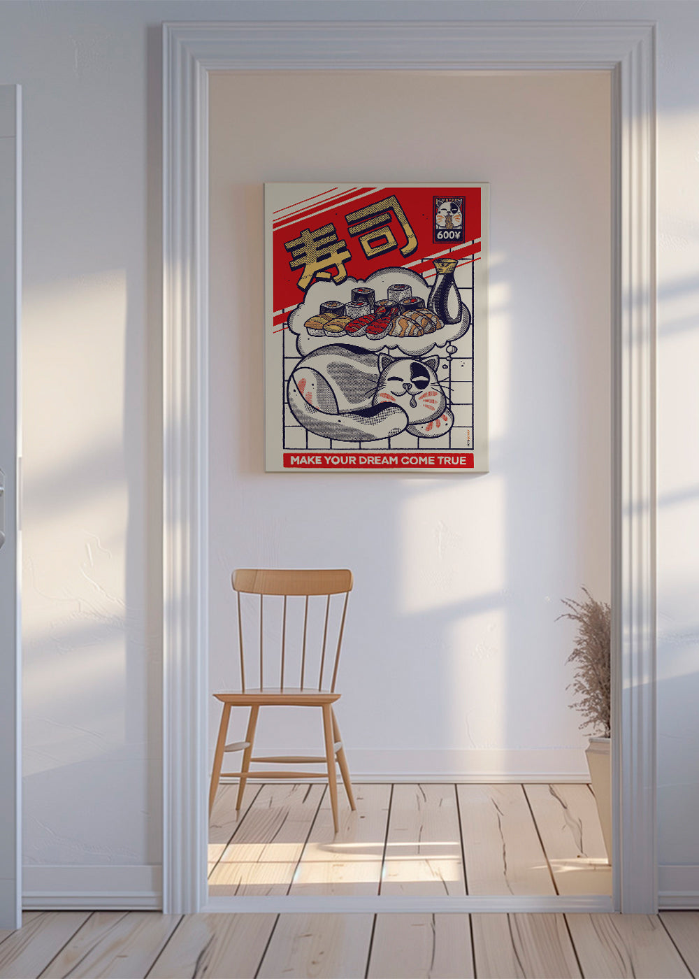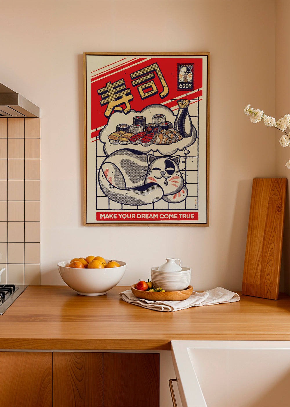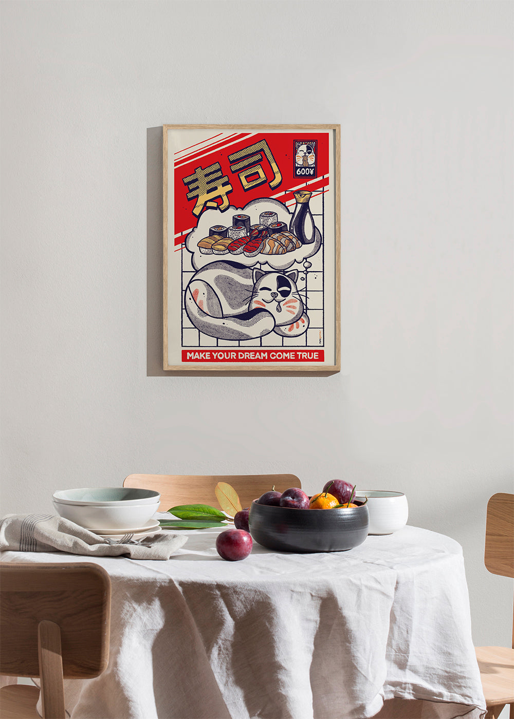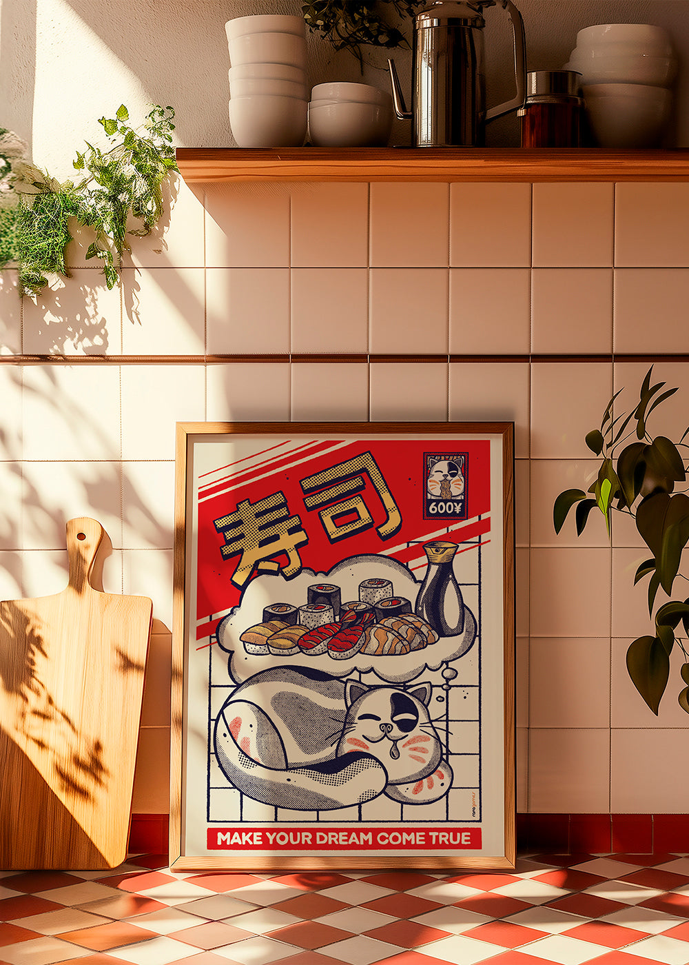 Jolie pièce appartenant à la catégorie affiches japonaise, de Rafa Gomes, avec des touches rouges, et avec orientation portrait. Une œuvre de style rétro idéale pour une décoration aux touches vintage . Faites de votre maison un lieu plein de style.