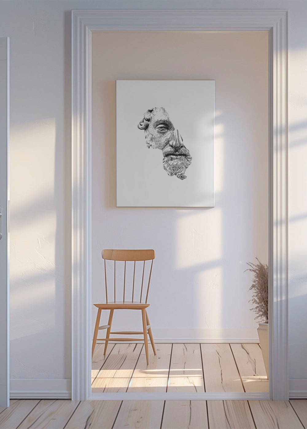 Jolie pièce de la collection affiches visage, de la collection de l'artiste Daniel Coulmann, avec les couleurs monochromes, et en portrait. C'est une illustration de style simple et propre, combinez-la avec d'autres illustrations pour obtenir une composition artistique. Obtenez une décoration plus artistique que jamais.