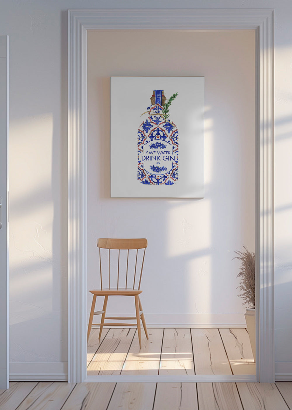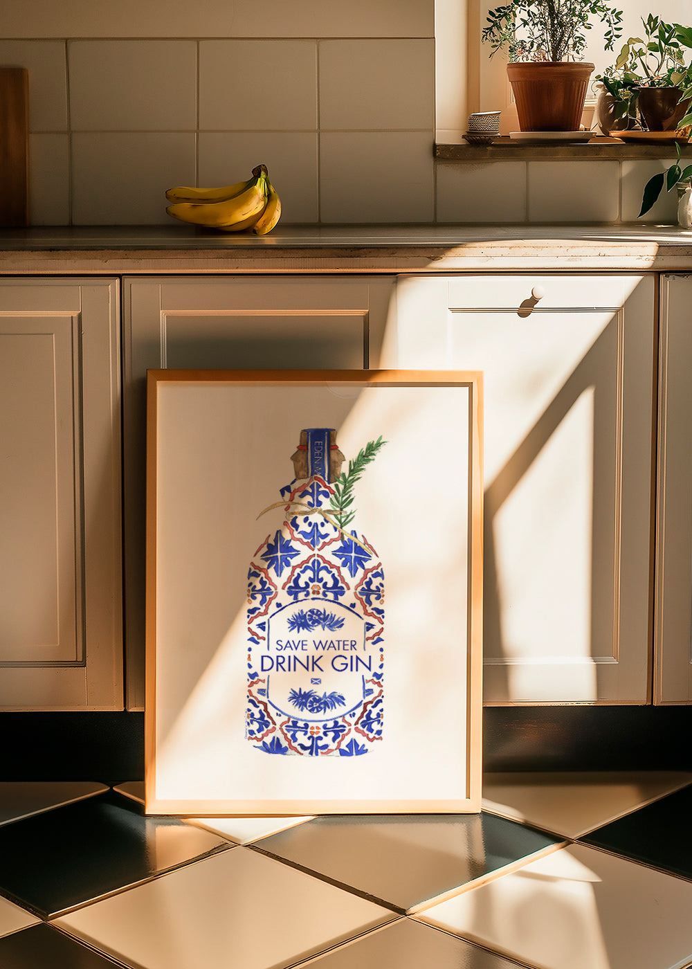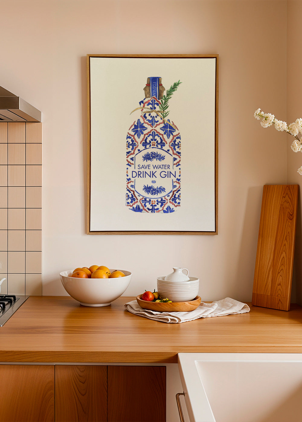 Ce affiche avec l'inspiration dans la collection affiches gin, de Mercedes Lopez Charro, avec des nuances de couleurs bleus, et avec orientation portrait. C'est une œuvre idéale pour décorer la cuisine de votre maison. Créez une décoration murale parfaite.
