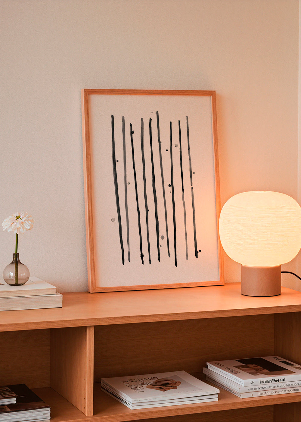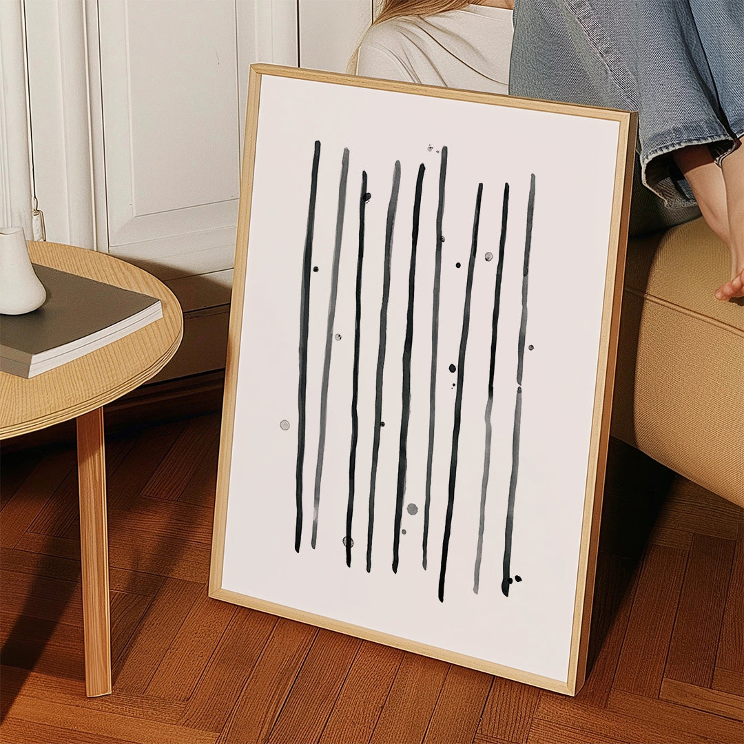 Cette oeuvre de la collection tableaux avec motifs rayures, de la collection de l'artiste Nouveau Prints, en couleurs gris, et en position portrait. Cette œuvre aux formes abstraites est idéale à combiner avec les tableaux géométriques et l'art abstrait. La touche ultime pour la décoration de votre maison.
