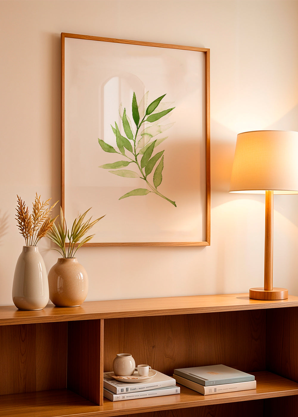 Un tableau de notre répertoire tableaux de fleurs et botanique, conçue par Alba Moreno, avec les couleurs verts, et à mettre en portrait. C'est une illustration de style simple et propre, combinez-la avec d'autres illustrations pour obtenir une composition artistique. Donnez vie aux murs de votre maison.