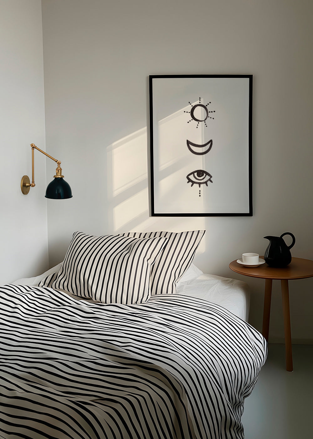 Une oeuvre du style de nos tableaux zodiaque, de l'artiste Kruth Design, avec les couleurs noirs, et dans une orientation portrait. Détendez-vous et laissez vos murs vous apporter ce calme. Cette œuvre est idéale pour être combinée avec d'autres affiches détente . Les murs d’une maison habillent cette dernière.