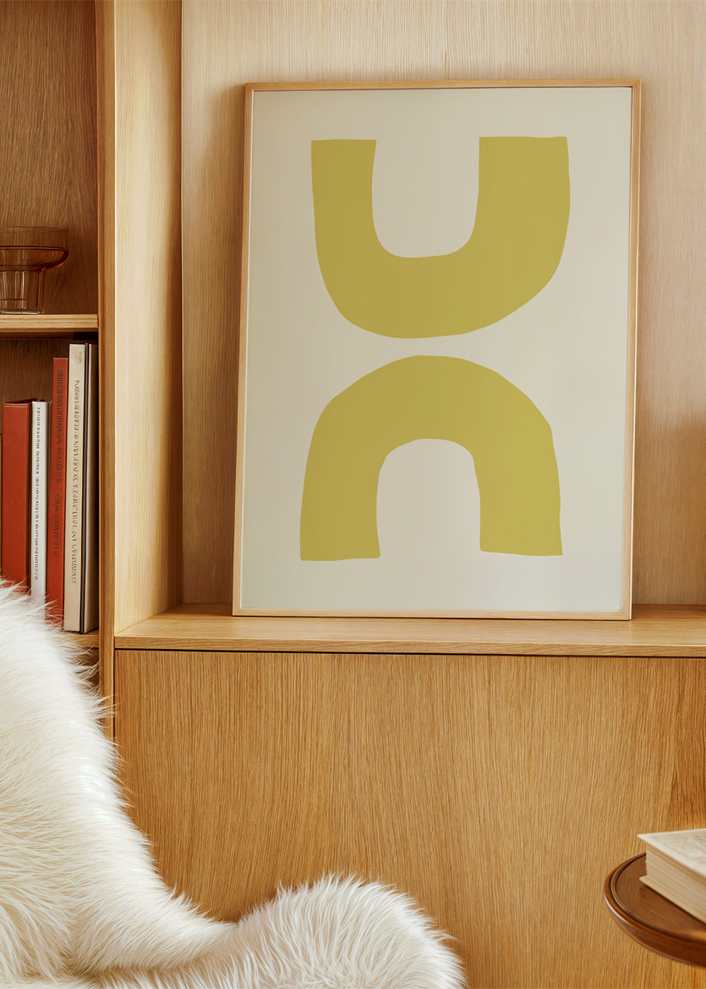 Une plaque appartenant à la catégorie tableaux géométrique, de l'artiste Nouveau Prints, avec pigments jaunes, et pour mettre en position portrait. L'art géométrique est un style élégant pour décorer les murs de la maison. Obtenez une décoration plus artistique que jamais.