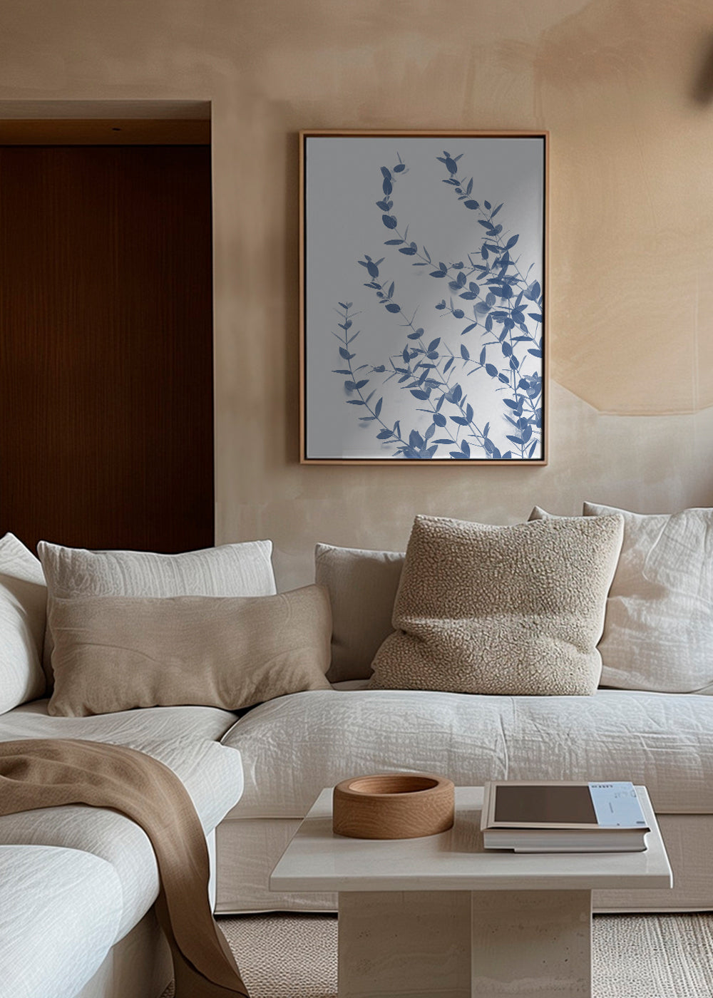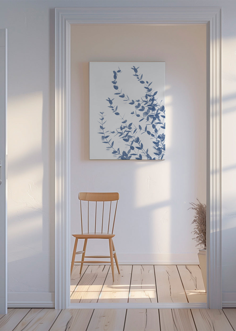 Une image de la série tableaux de fleurs et botanique, créée par Elena Veronese, avec les couleurs bleus, et dans une orientation vers un portrait. Ce modèle donnera une touche légère à votre maison, il se combine très bien avec d'autres tableaux de fleurs et de plantes et avec des textes et des phrases. Ce sont les détails qui font toute la différence.