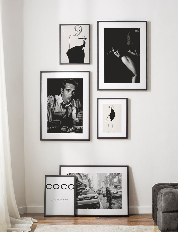 Jolie pièce avec l'inspiration dans la collection tableaux fashion, en couleurs monochromes, et dans une orientation portrait. Si vous recherchez une pièce qui se combine avec n'importe quelle tonalité, cette œuvre en noir et blanc est idéale. Combinez-la avec des motifs colorés ou d'autres tableaux en noir et blanc . Laissez vos murs raconter des histoires.