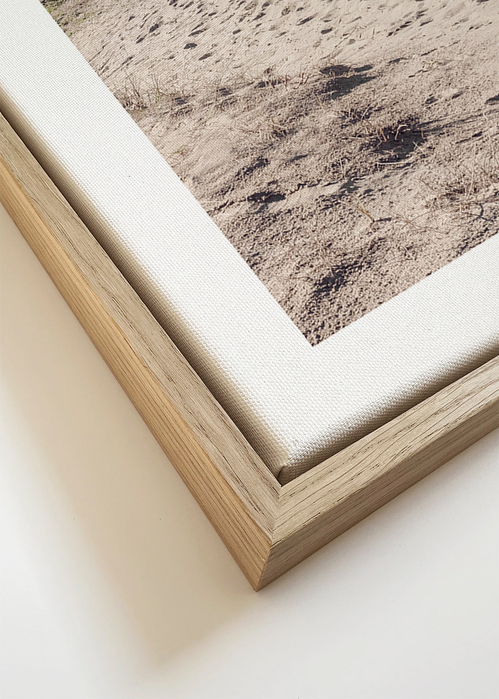 Si vous sélectionnez l'option passe-partout, nous ajouterons le tableau blanc mat au cadre, et nous réduirons le dessin de l'œuvre. Par exemple, si vous sélectionnez un tirage au format 50x70 cm, avec un cadre et un passe-partout couleur chêne, nous réduirons le dessin du tirage au format précédent (40x50cm). Ainsi, il s'adaptera parfaitement à la fenêtre intérieure du passe-partout.