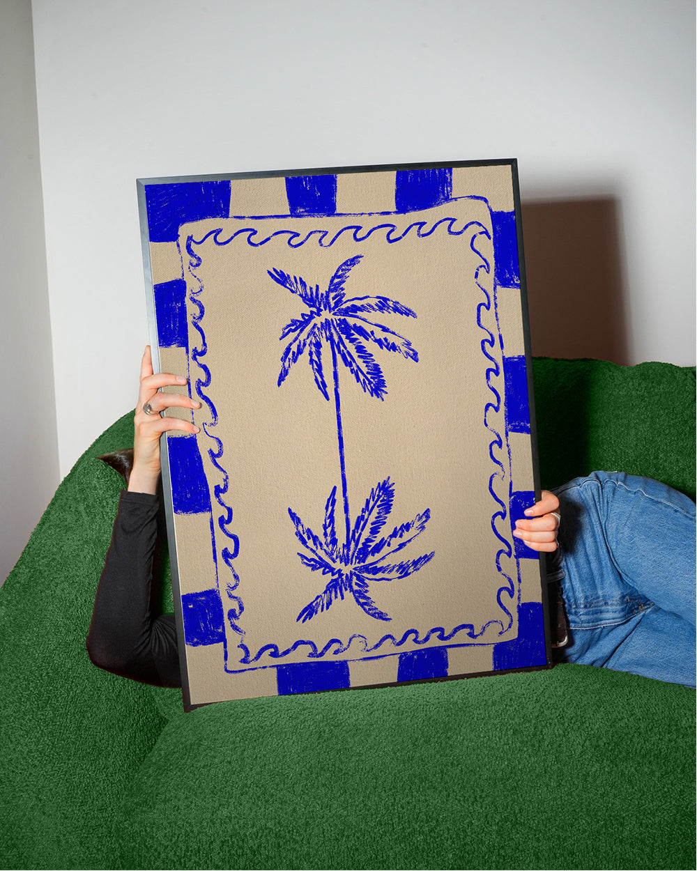 Un tableau de notre catégorie affiches palmier, de Shatha Dafai, avec des nuances bleus, et à mettre en portrait. Une œuvre idéale pour les espaces qui respirent l'art et la créativité. Nos illustrations sont idéales pour décorer des espaces vides ou ennuyeux. Créez un environnement unique.