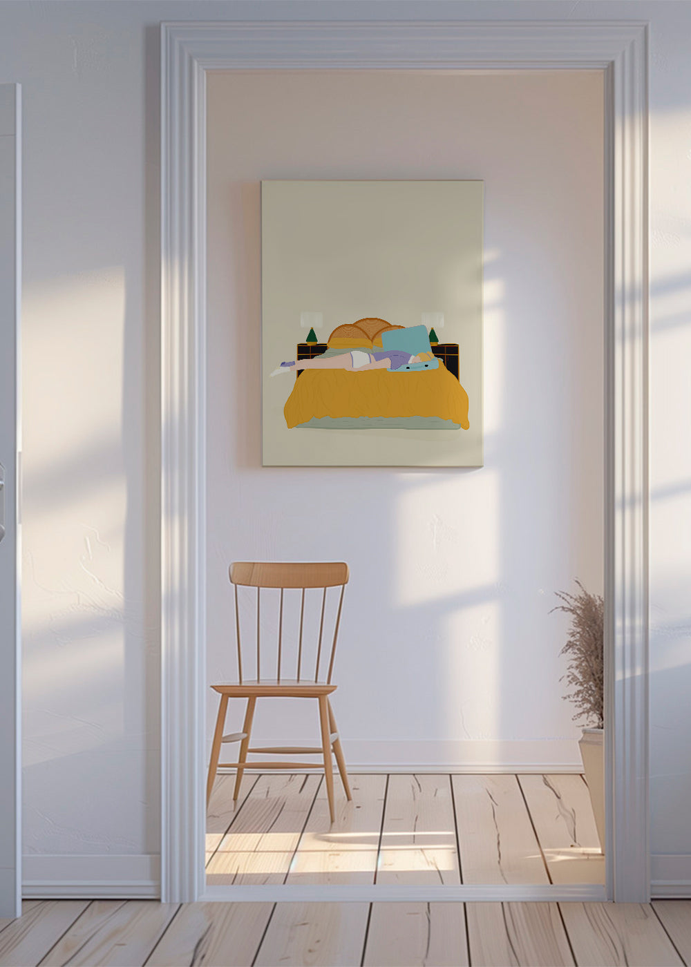 Un poster appartenant à la catégorie posters femme, de 1x, avec des touches jaunes, et en position portrait. Les tableaux avec illustrations sont parfaits pour être combinés avec l'art minimaliste et abstrait. Choisissez la taille qui correspond le mieux à votre intérieur.