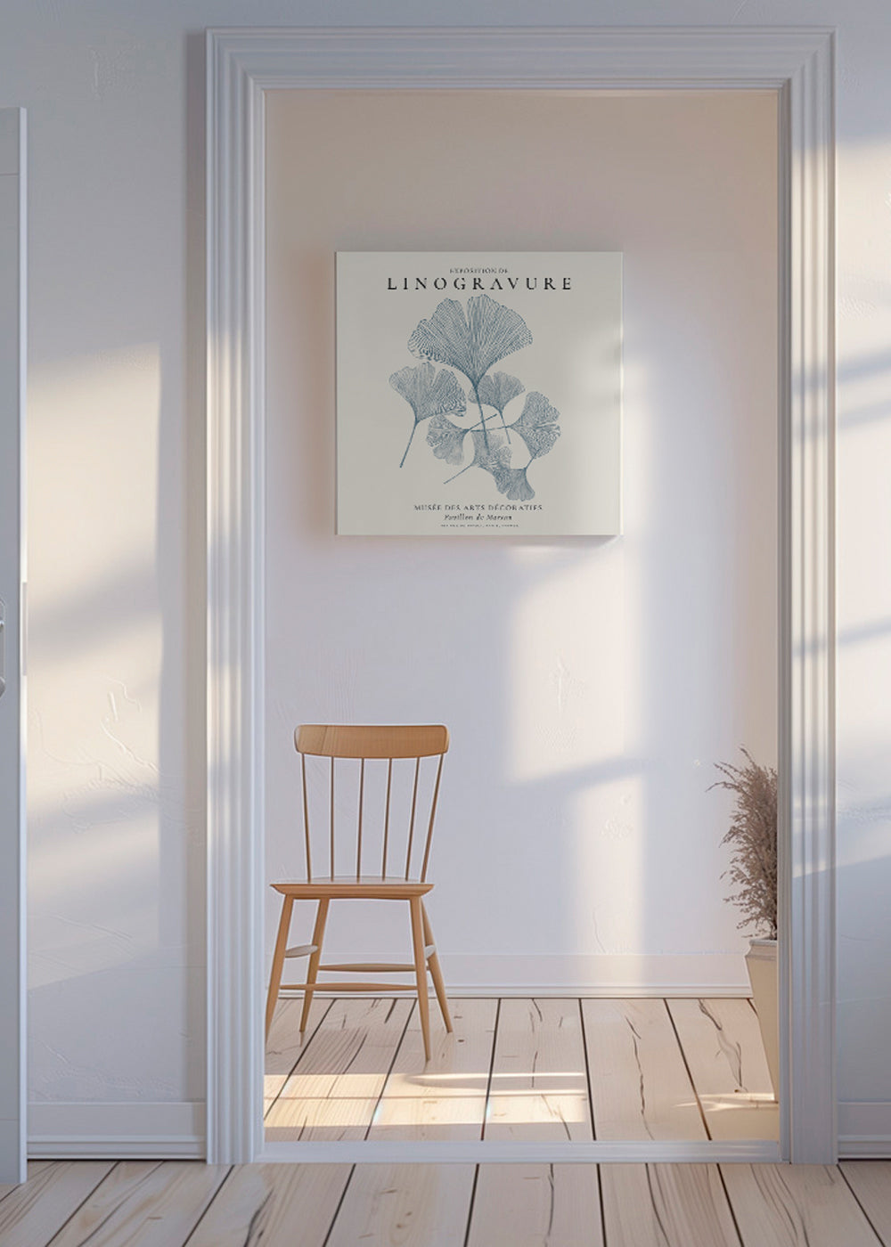 Affiche style scandinave Exposition de linogravure, Ginkgo leaves - SQUARE