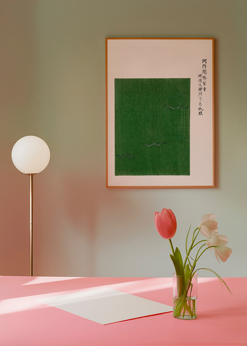 Affiche style scandinave Green Birds Woodblock print from Yatsuo no tsubaki by Taguchi Tomoki