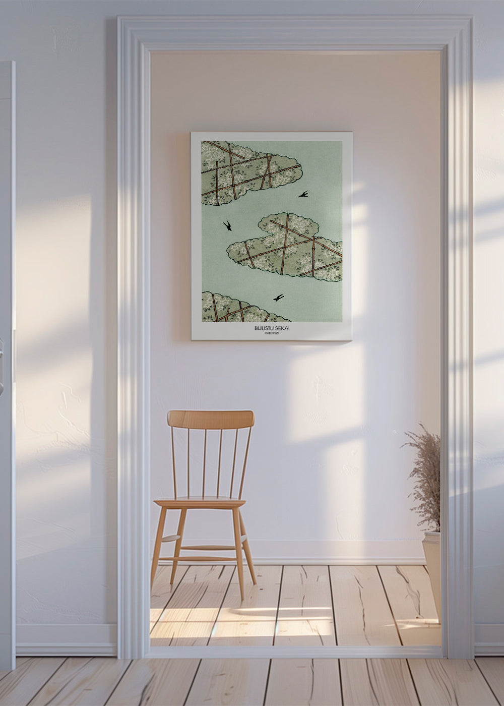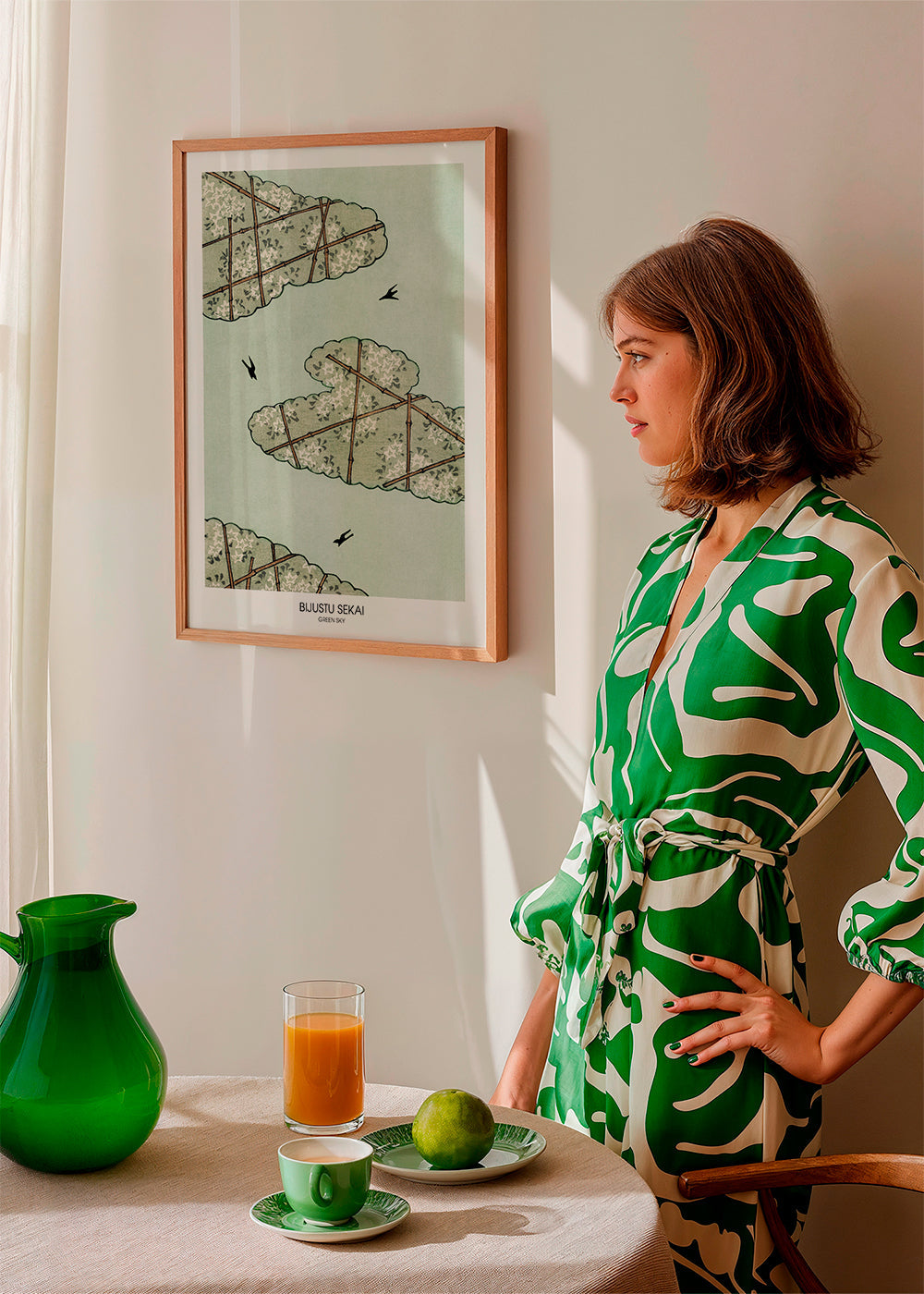 Ce modèle de notre sélection affiches japonaise, de 1x, avec les couleurs verts, et en position portrait. Les tableaux avec illustrations donnent une touche originale à la décoration de la maison. Créez un environnement unique.