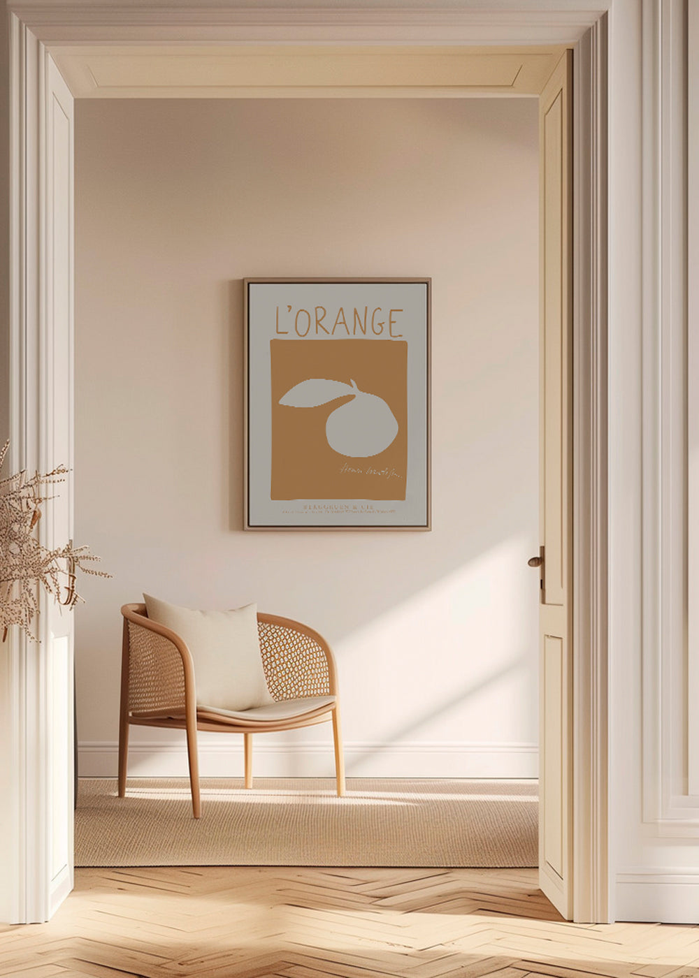 Une plaque de notre catégorie affiches artiste, appartenant à la collection de Seven Wall Art, avec des nuances de tons orangés, et pour mettre en orientation portrait. L’ art minimaliste apporte paix et harmonie à l'intérieur de la maison. Créez de petits espaces remplis d'art.
