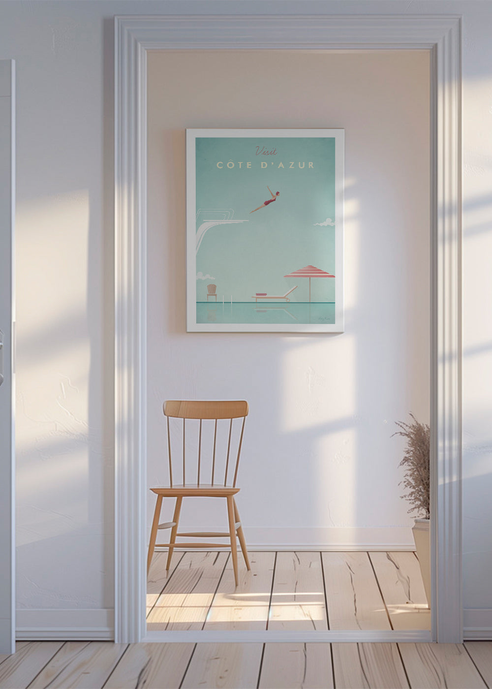 Le passe-partout est un panneau blanc mat qui entoure l'affiche pour la protéger du méthacrylate, et qui améliore également l'expressivité de l'œuvre et met en valeur ses détails.
