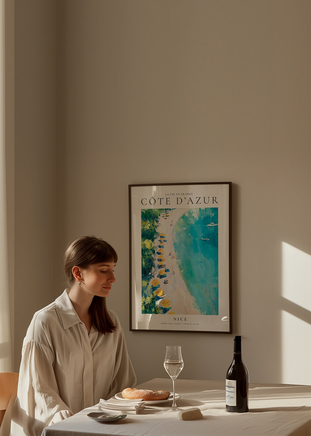 Beau affiche de la collection tableaux de voyage, conçue par Seven Wall Art, avec des nuances de tons bleus, et pour mettre en portrait. Combinez les skylines, photos et autres cartes des villes pour créer une composition adaptée aux voyageurs. La combinaison parfaite de l'originalité et du design.