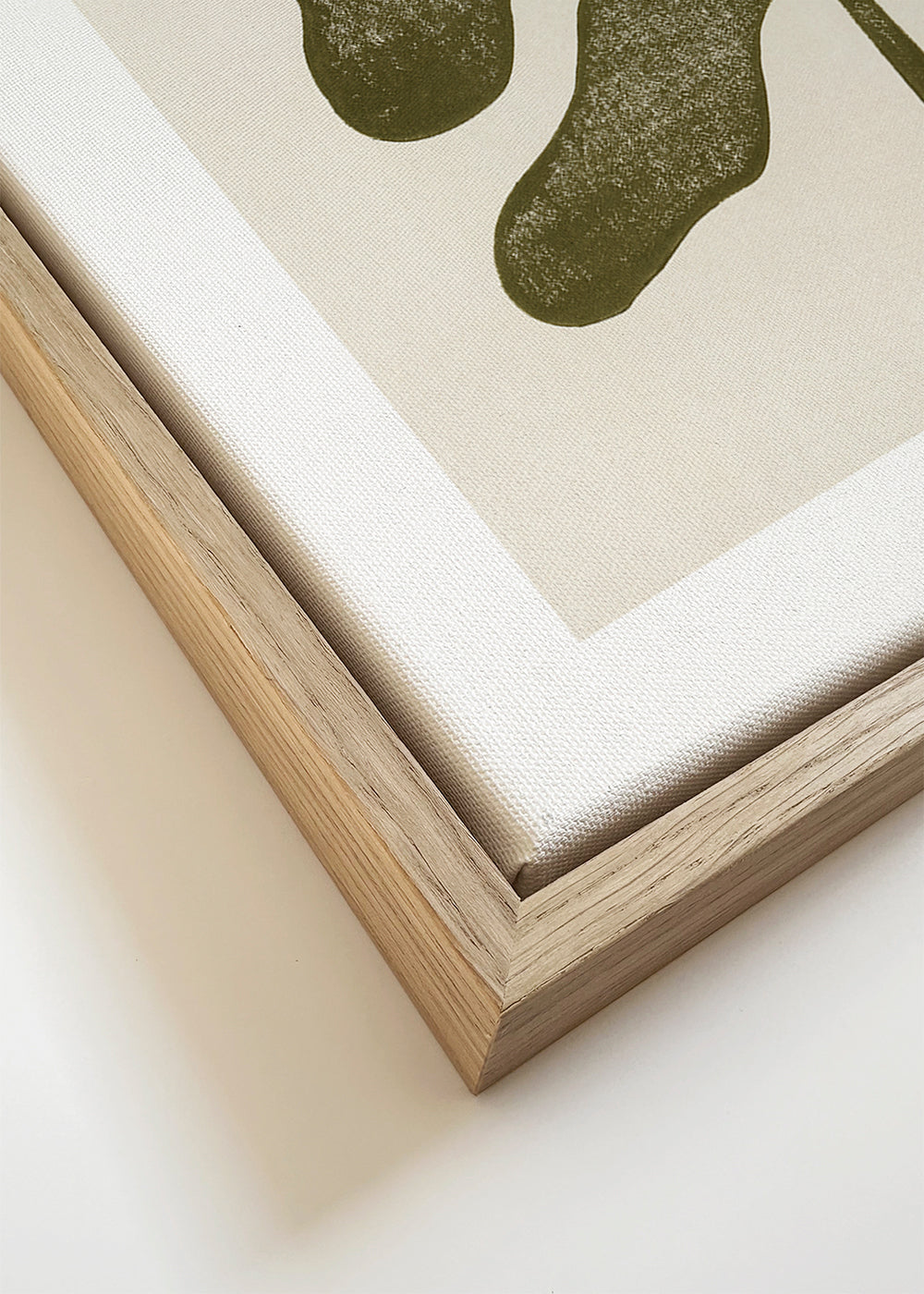 Si vous sélectionnez l'option passe-partout, nous ajouterons le tableau blanc mat au cadre, et nous réduirons le dessin de l'œuvre. Par exemple, si vous sélectionnez un tirage au format 50x70 cm, avec un cadre et un passe-partout couleur chêne, nous réduirons le dessin du tirage au format précédent (40x50cm). Ainsi, il s'adaptera parfaitement à la fenêtre intérieure du passe-partout.