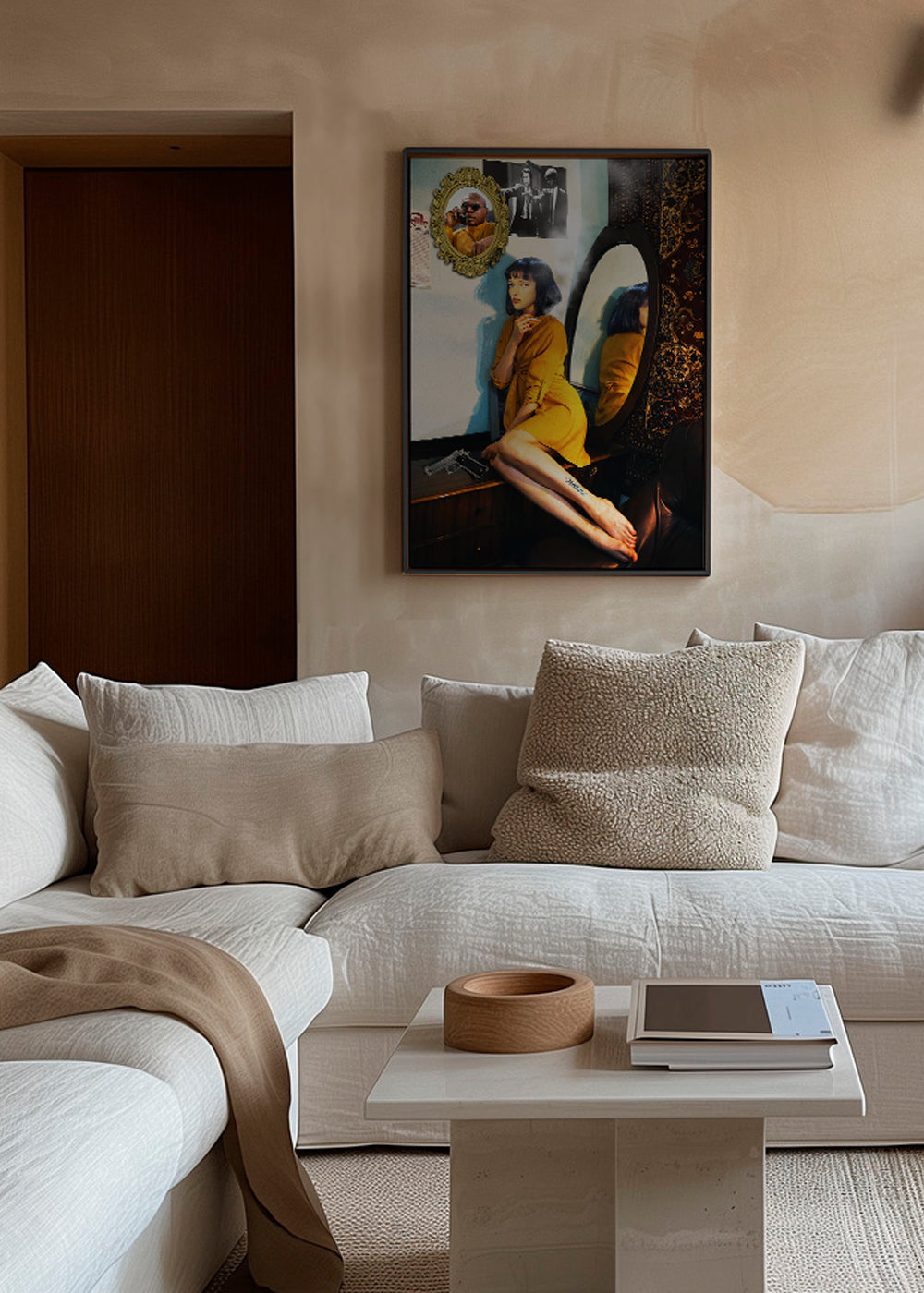Un affiche de la série posters femme, faite par Dikhotomy, avec des tonalités jaunes, et en position portrait. Une œuvre minimaliste au design sobre et élégant. Combinez-la avec d'autres tableaux minimalistes pour obtenir une décoration d'avant-garde. Libérez votre esprit créatif et décorez vos murs avec de l'art.