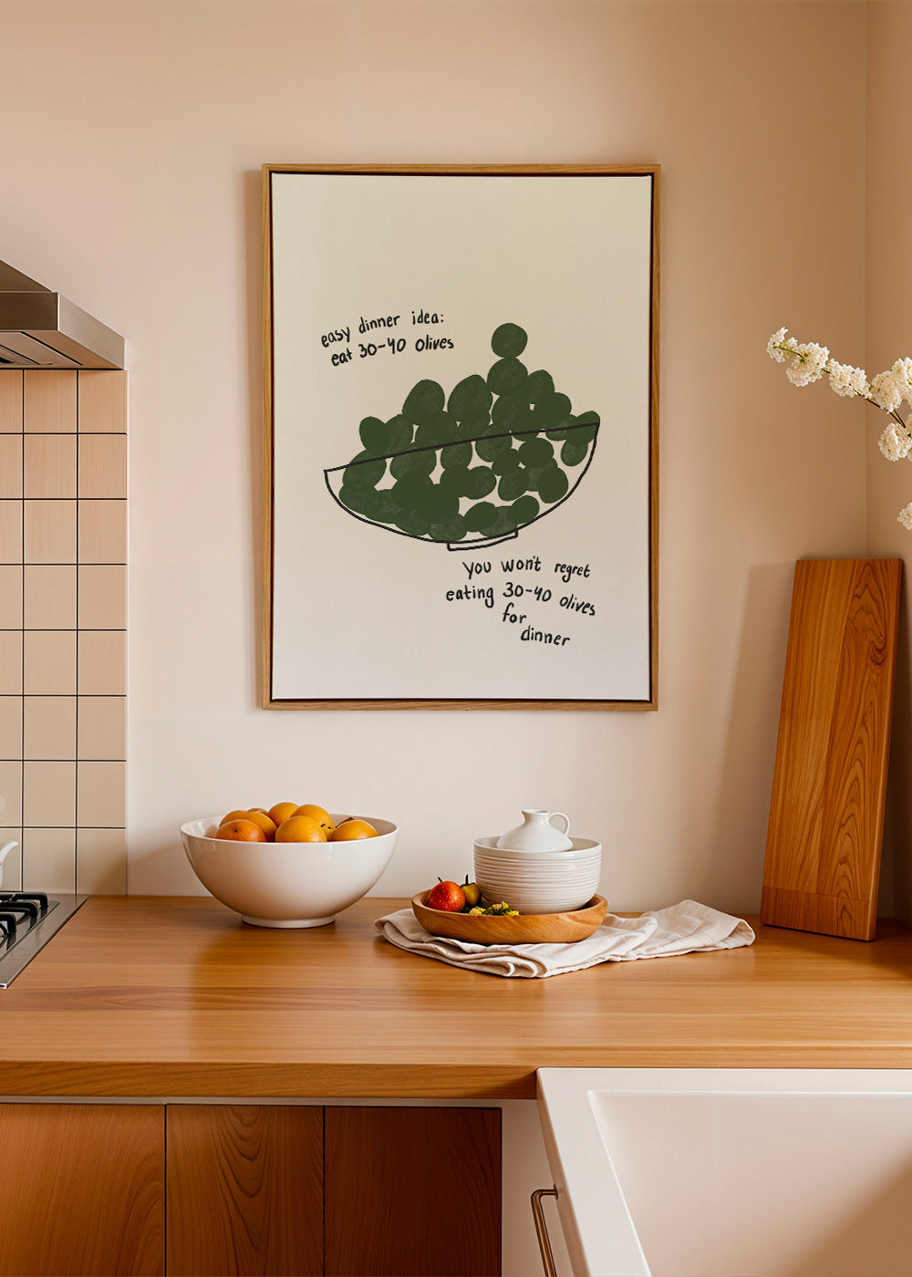 Affiche style scandinave Olives for Dinner - Athene Fritsch