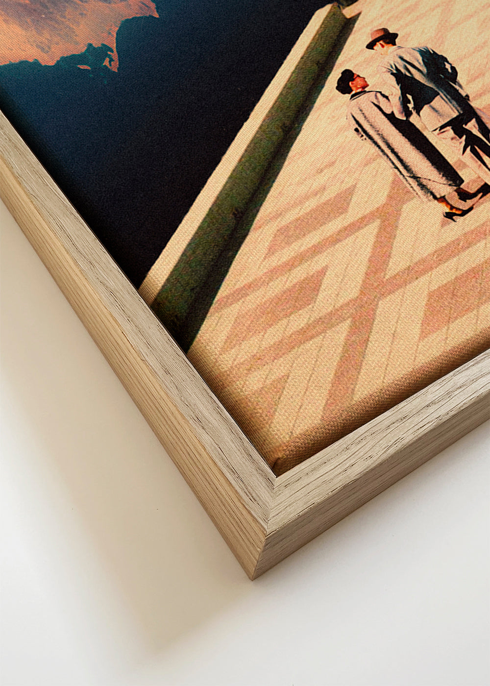 Si vous sélectionnez l'option passe-partout, nous ajouterons le tableau blanc mat au cadre, et nous réduirons le dessin de l'œuvre. Par exemple, si vous sélectionnez un tirage au format 50x70 cm, avec un cadre et un passe-partout couleur chêne, nous réduirons le dessin du tirage au format précédent (40x50cm). Ainsi, il s'adaptera parfaitement à la fenêtre intérieure du passe-partout.