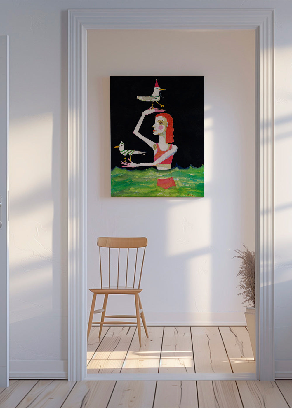 Affiche style scandinave Swimming Lady with birds - Sharyn Bursic