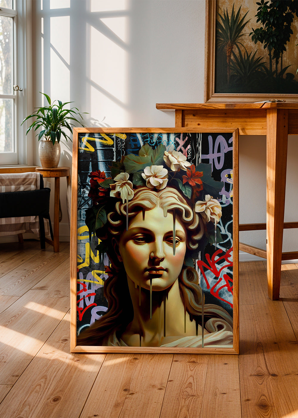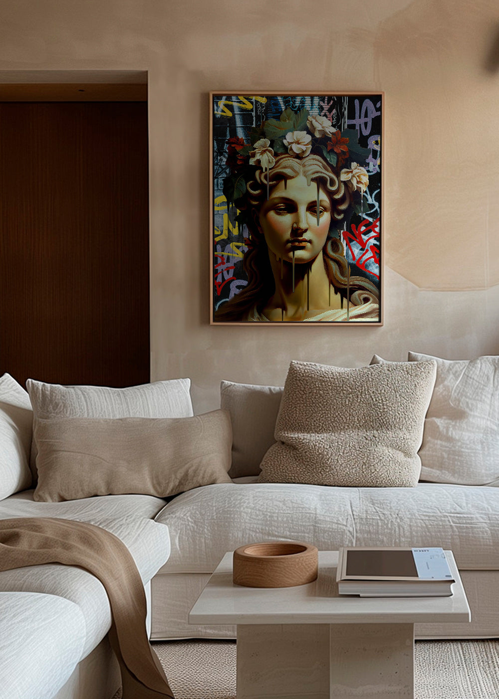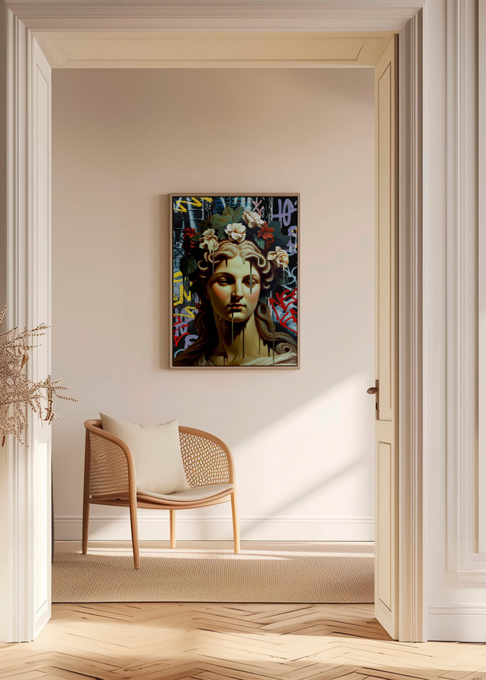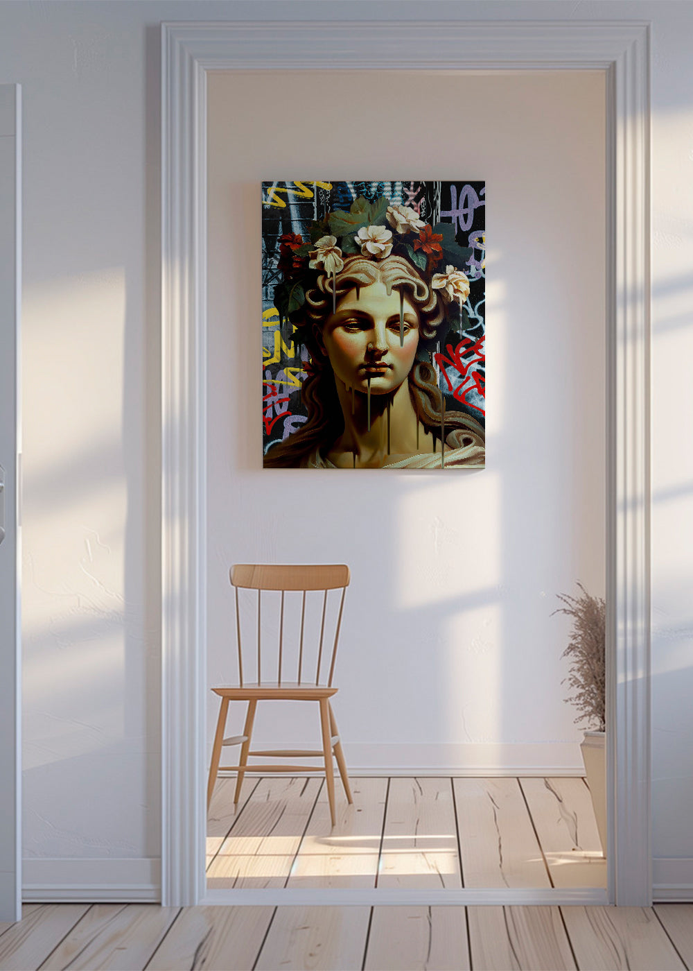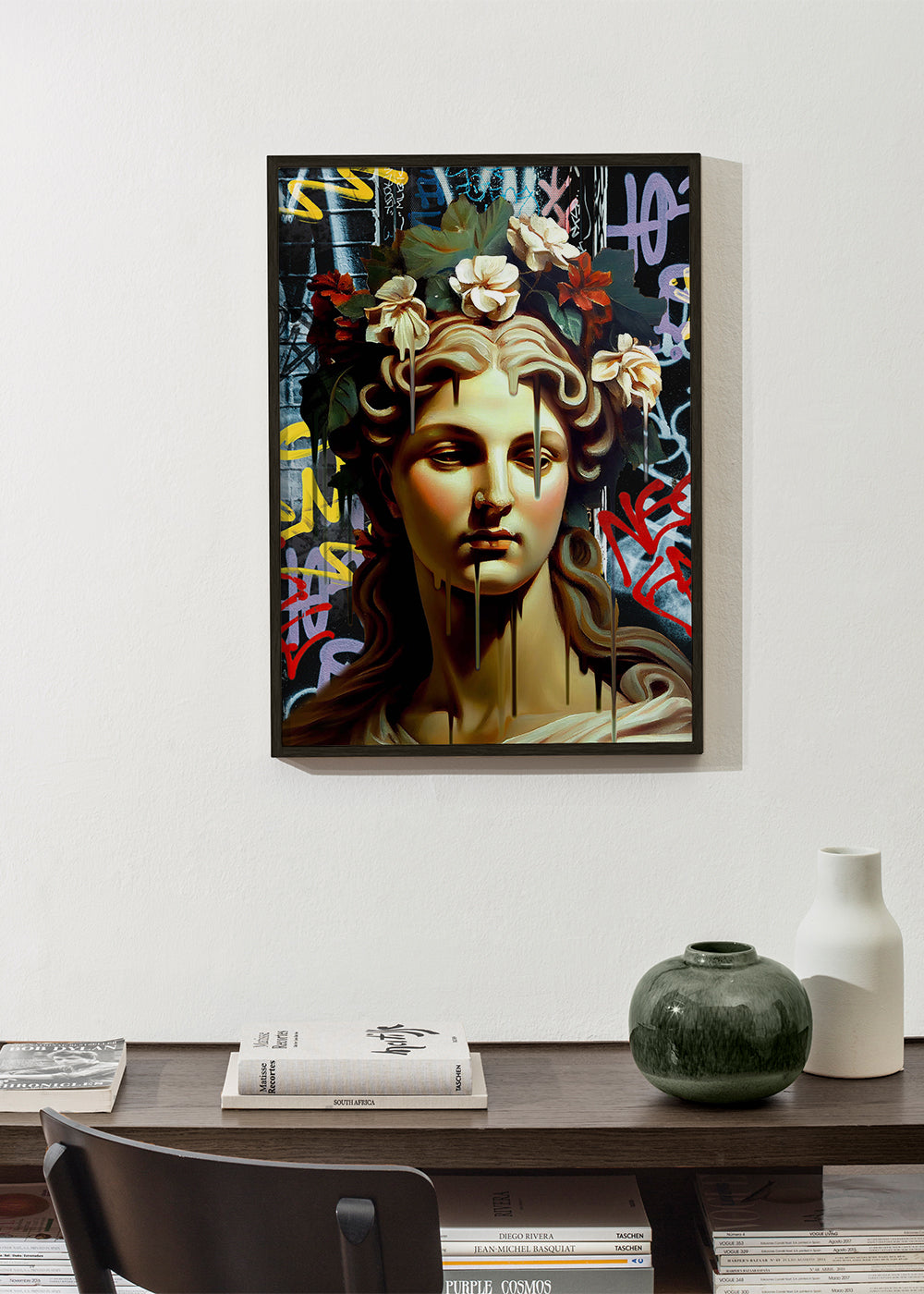 Cette oeuvre de notre sélection graffiti posters, de Dikhotomy, avec des touches dorés, et en position portrait. Les tableaux avec illustrations sont parfaits pour être combinés avec l'art minimaliste et abstrait. Ce sont les détails qui font toute la différence.