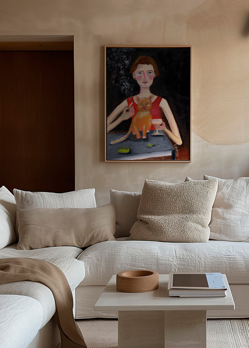 Un tableau de la collection tableaux de chat, de 1x, avec des touches orangés, et dans une orientation vers un portrait. Décorer avec des tableaux d'animaux est un moyen de transmettre de l'énergie grâce à vos murs. Les murs d’une maison habillent cette dernière.