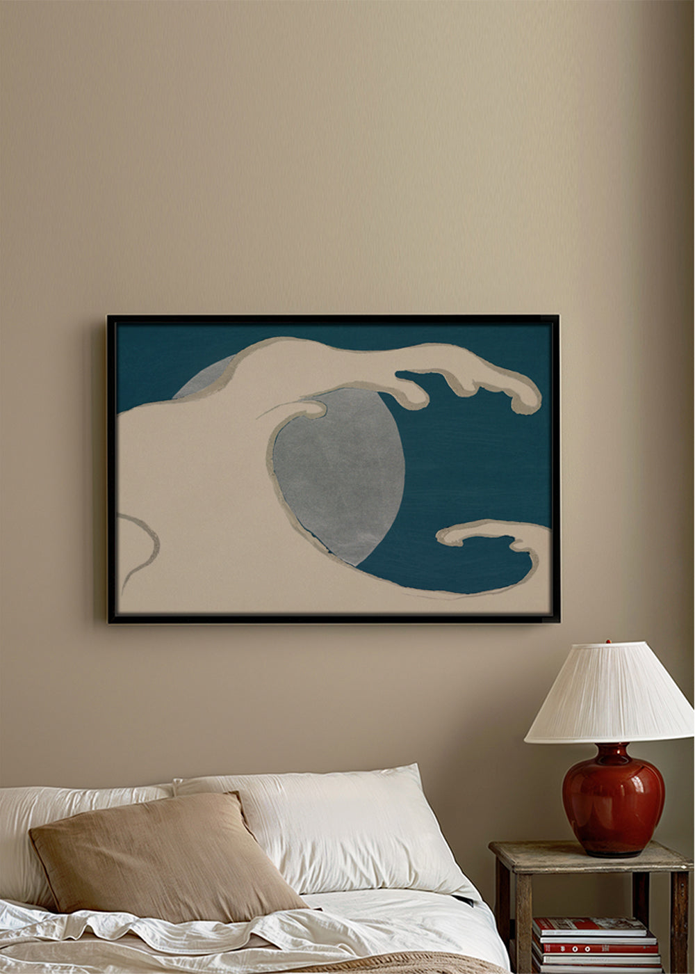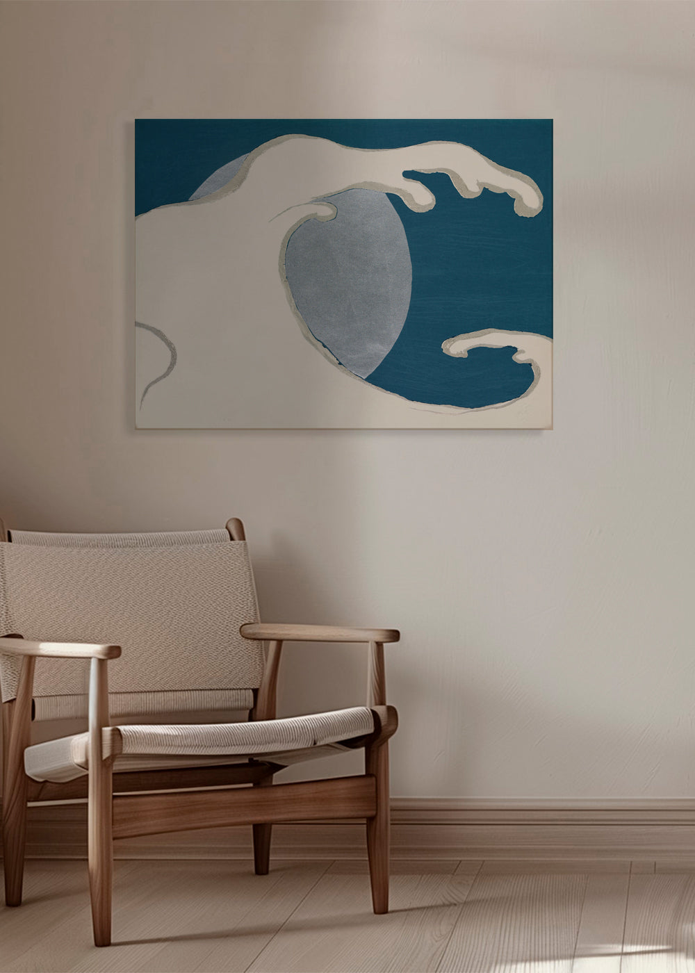 Ce modèle de la série affiches japonaise, de 1x, avec des touches bleus, et en format paysage. Les tableaux avec illustrations sont parfaits pour être combinés avec l'art minimaliste et abstrait. Habillez les murs de votre maison.