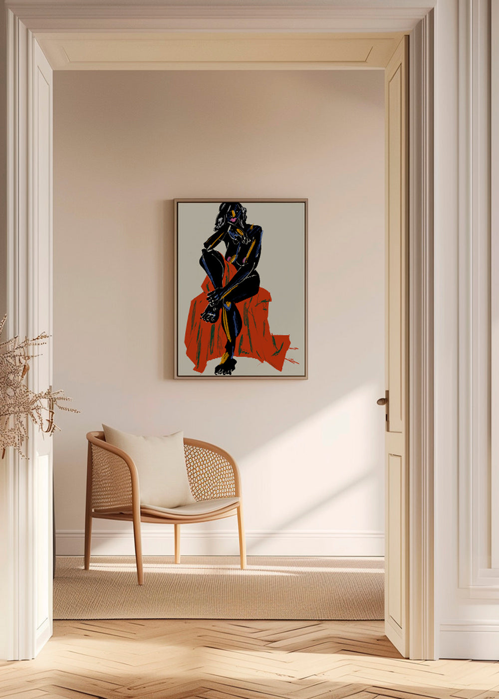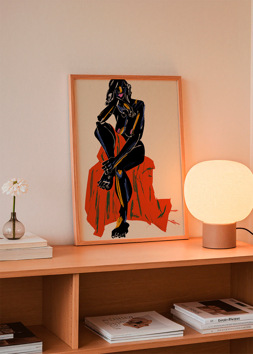 Une image de notre collection posters femme, de la collection de l'artiste 1x, avec des nuances de tons rouges, et avec orientation portrait. Les tableaux avec illustrations donnent une touche originale à la décoration de la maison. Changez le look de vos pièces en y ajoutant des œuvres d'art.