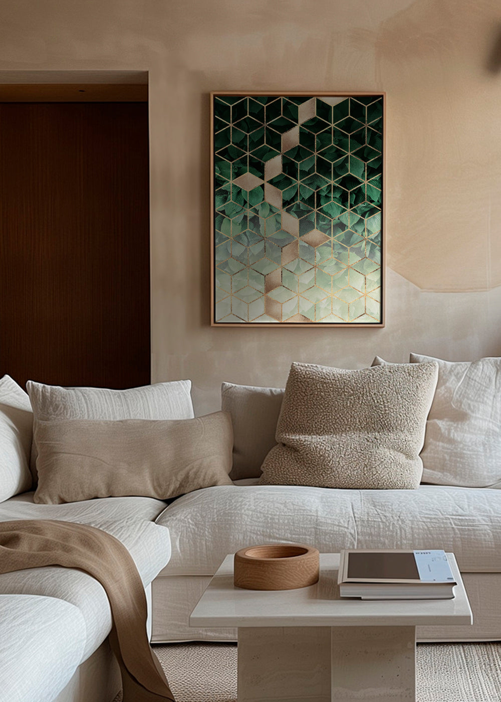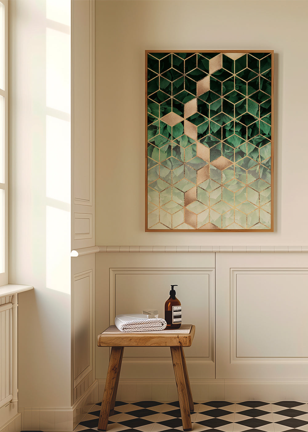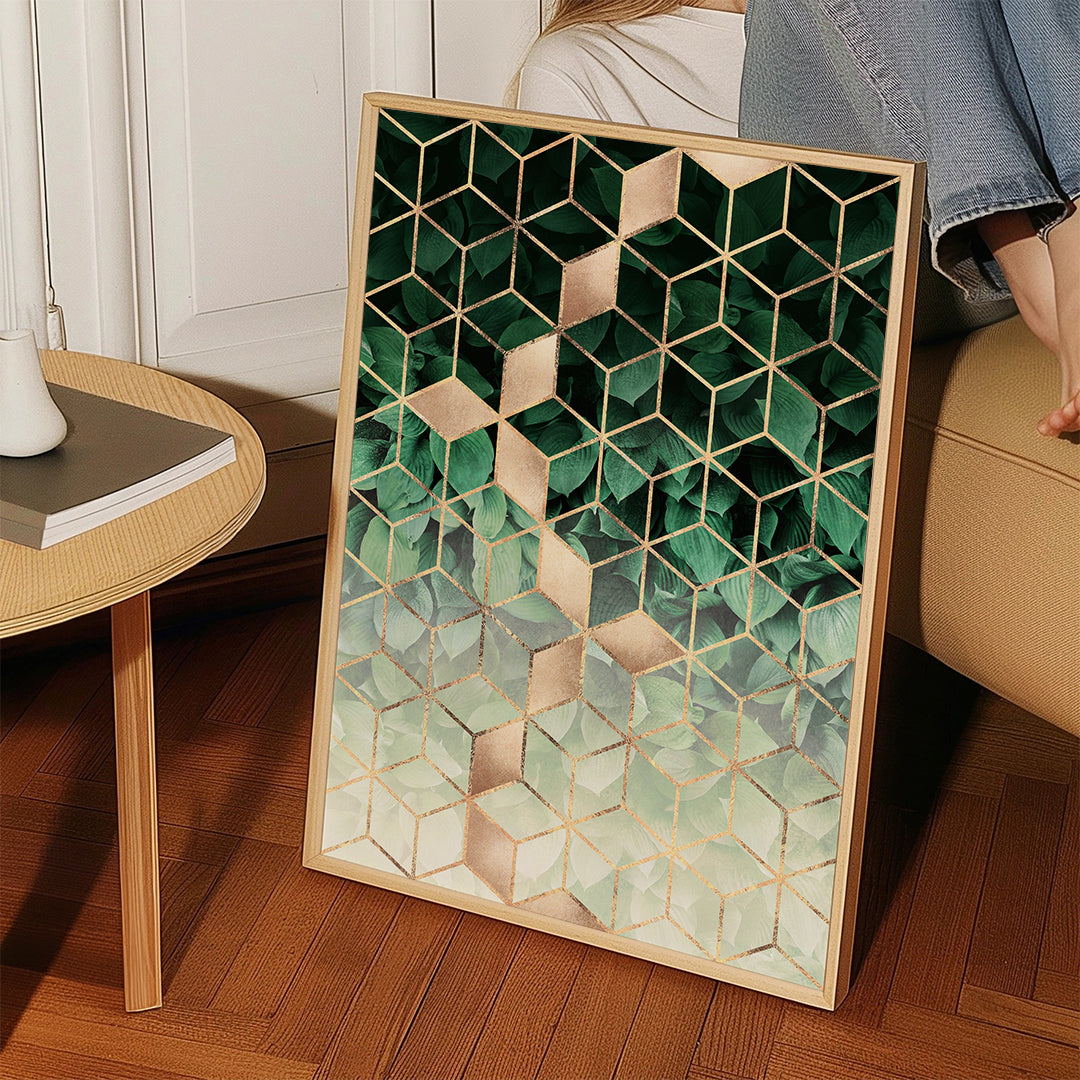 Affiche vertical géométrique des cubes verts et dorés