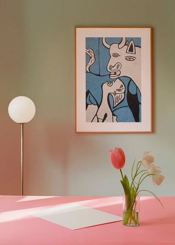 Le passe-partout est un panneau blanc mat qui entoure l'affiche pour la protéger du méthacrylate, et qui améliore également l'expressivité de l'œuvre et met en valeur ses détails.