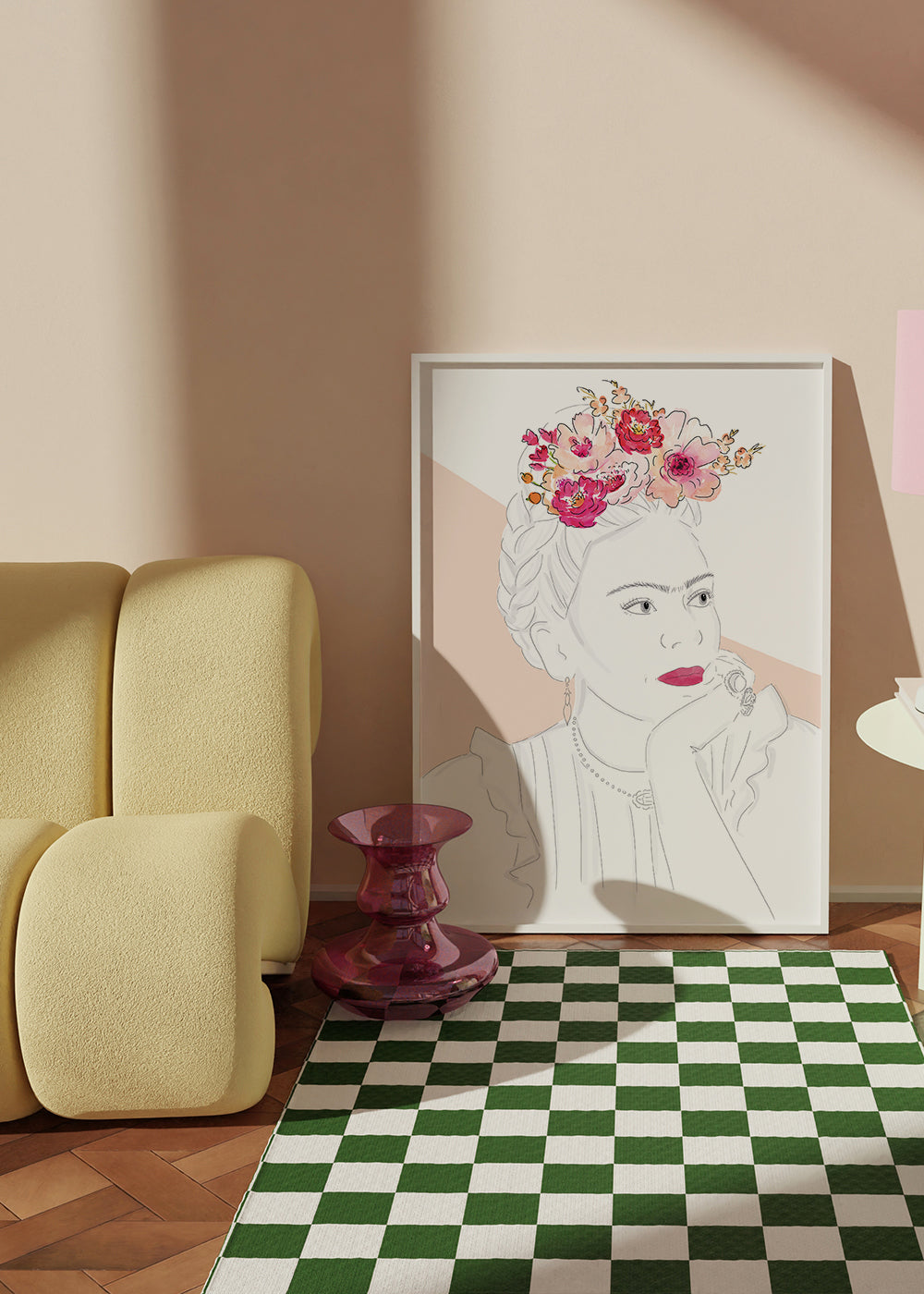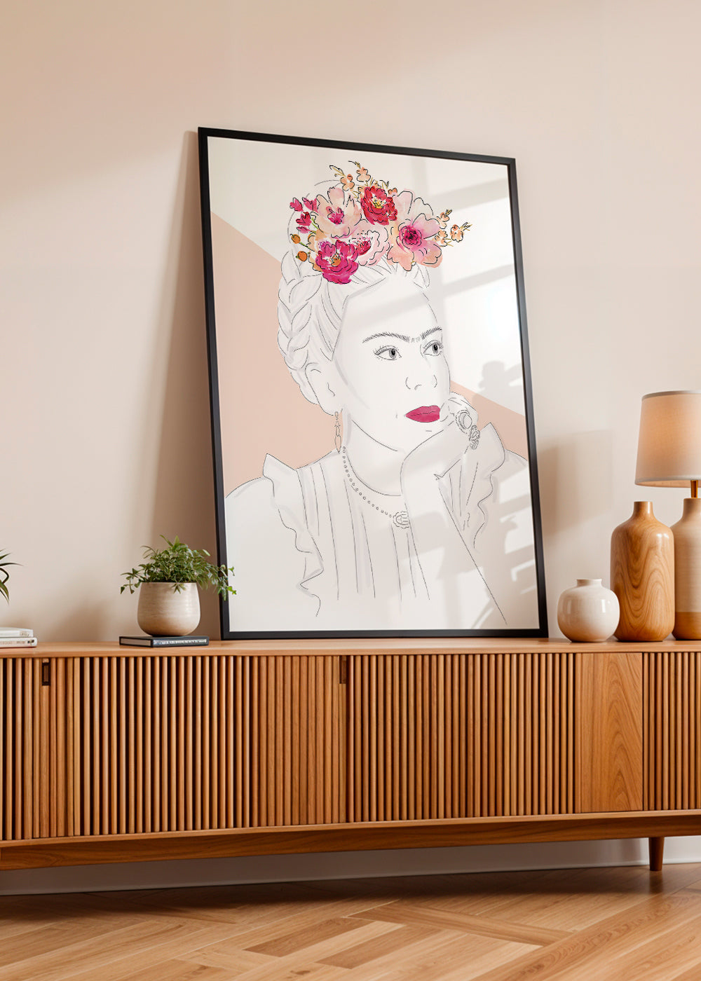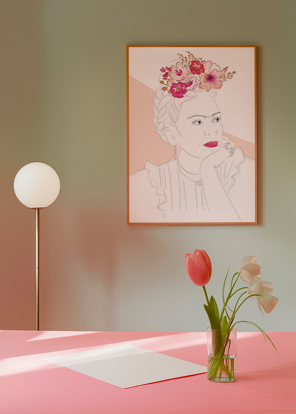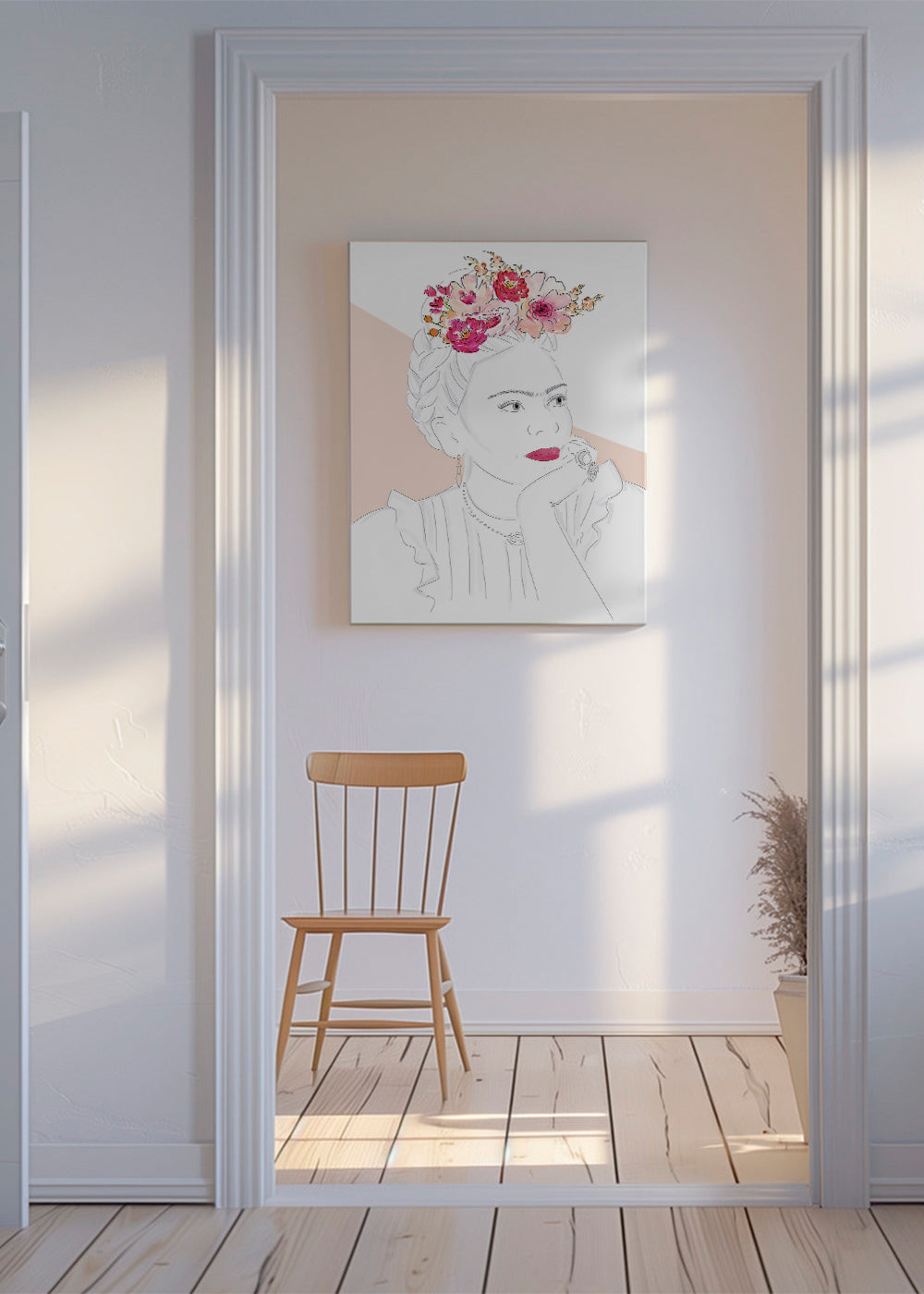 Ce modèle de notre collection tableaux et affiches frida kahlo, conçue par Kruth Design, avec des touches roses, et dans une orientation vers un portrait. Les tableaux avec illustrations donnent une touche originale à la décoration de la maison. Laissez l'art inonder votre maison.