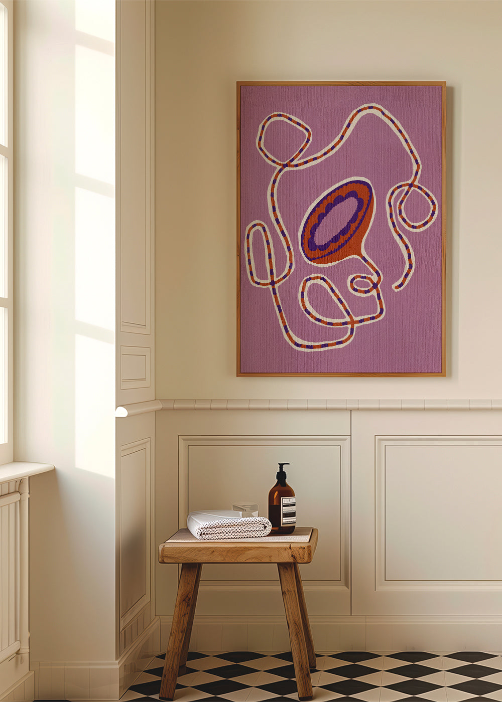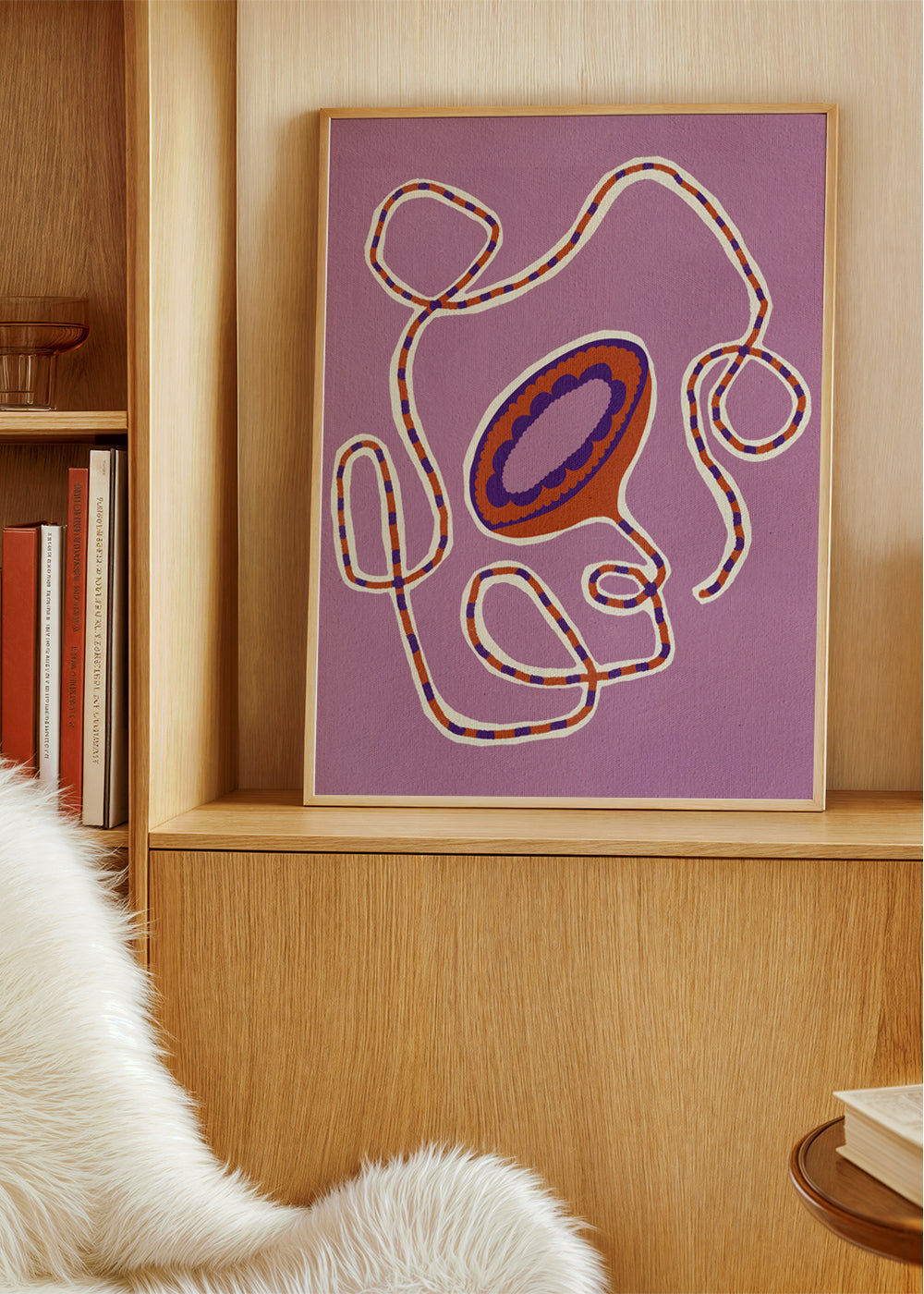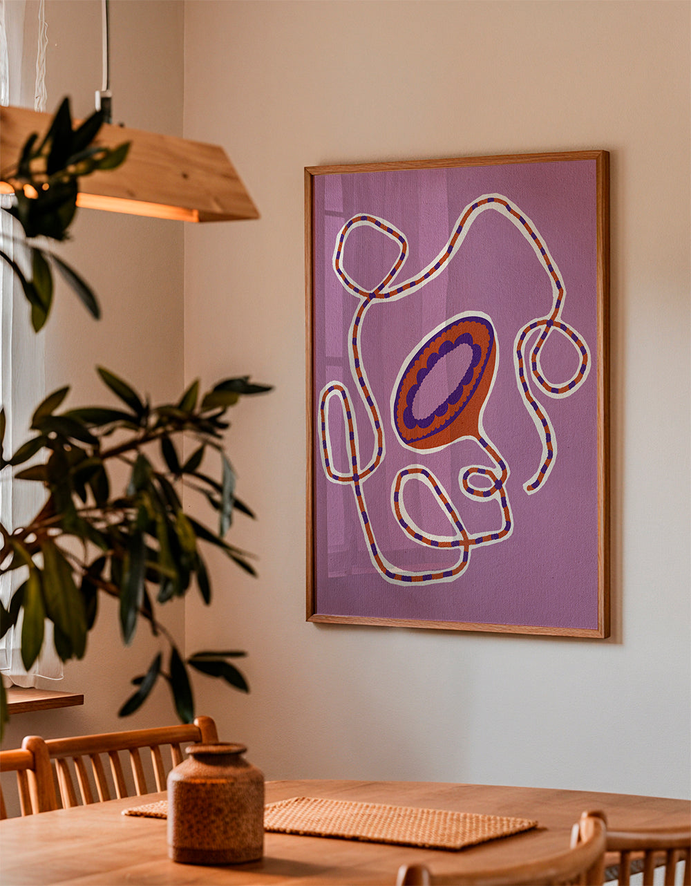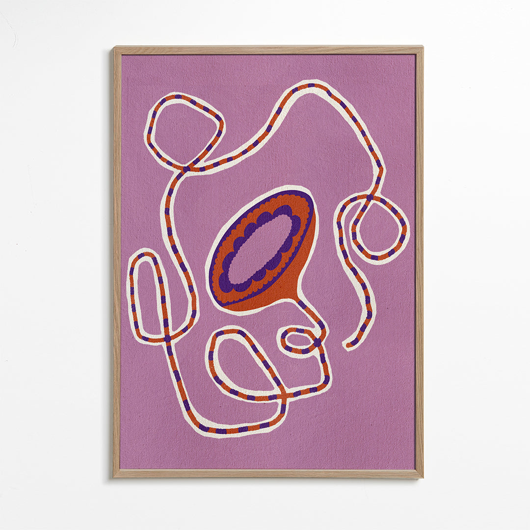 Personnages avec histoire. Belle impression Inspiré par la créativité de Shatha Dafai. Composition vibrante de violets conçu au format verticale. Les tableaux avec illustrations sont parfaits pour être combinés avec l'art minimaliste et abstrait. Transformez vos murs ennuyeux