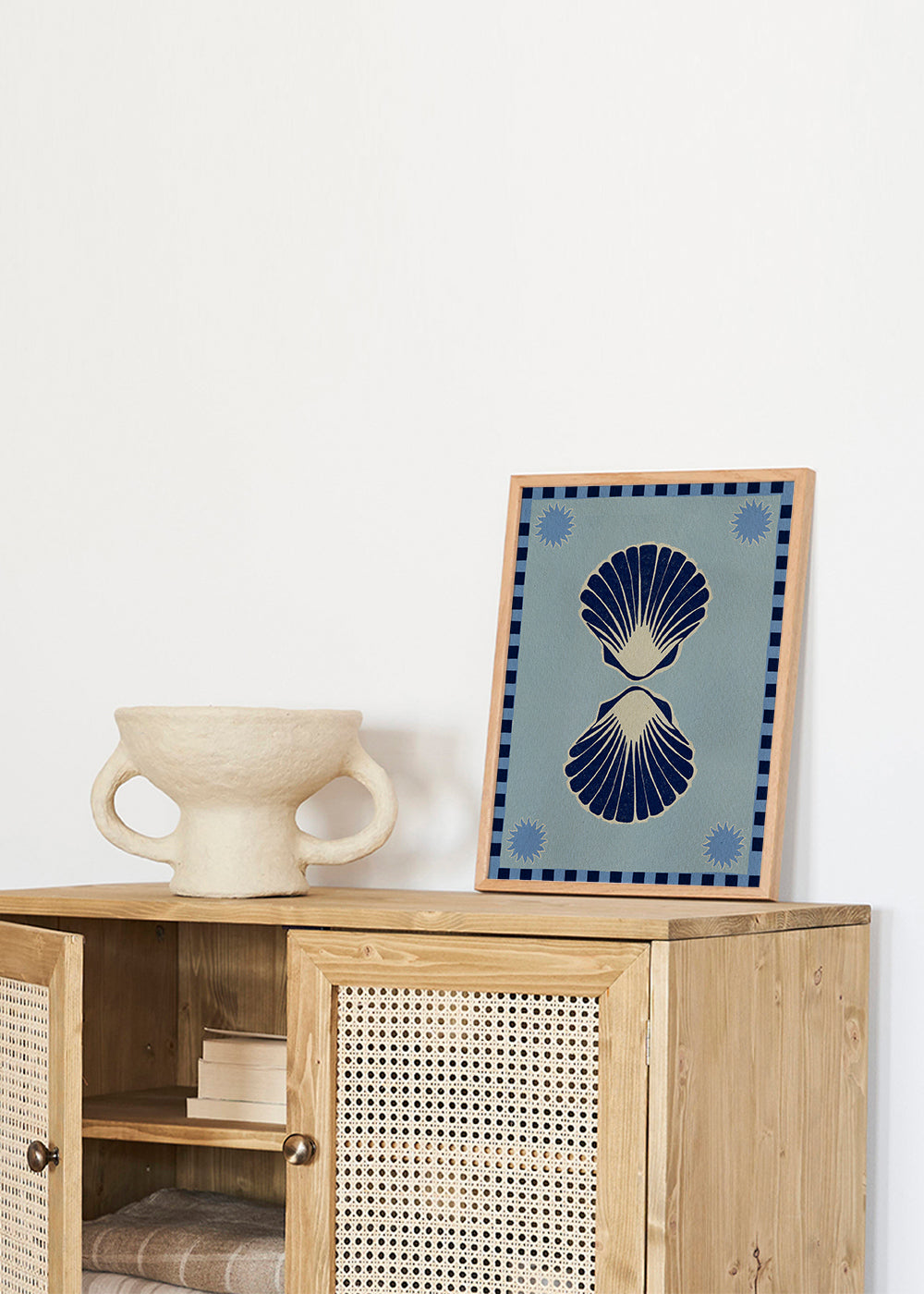 Art qui raconte. Belle impression Conçu par Shatha Dafai. Mettant en avant la vivacité de bleus stylisé au format verticale. Une œuvre idéale pour les espaces qui respirent l'art et la créativité nos illustrations sont idéales pour décorer des espaces vides ou ennuyeux. Améliorez votre espace avec style