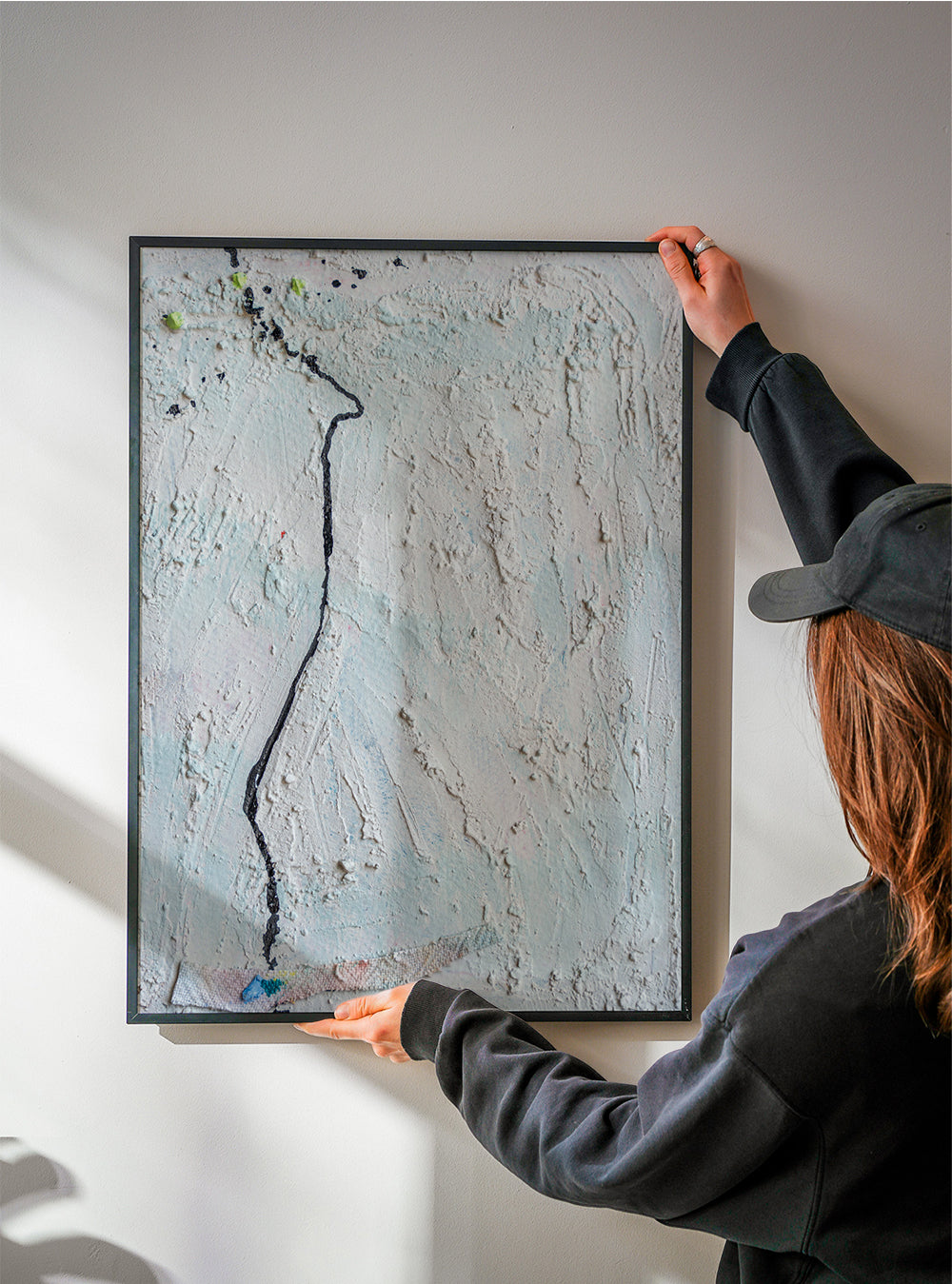 Pour accrocher nos cadres, vous devez séparer légèrement le cintre en métal noir ou argenté de l'arrière. Une fois séparé, vous pourrez l'accrocher au cintre que vous aurez choisi en fonction du matériau de votre mur.