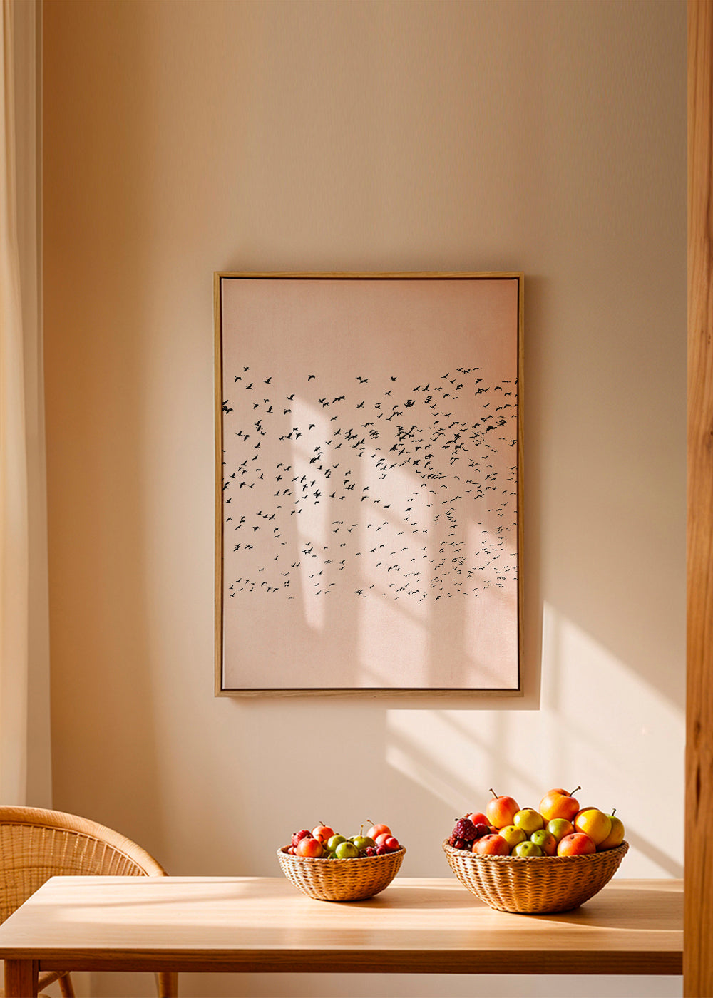 Ce modèle de notre répertoire affiches oiseaux, créée par KUBISTIKA, avec des touches roses, et pour mettre en orientation portrait. Combinez cette œuvre avec d'autres tableaux mindfulness et laissez vos murs transmettre une énergie positive. Habillez les murs de votre maison.