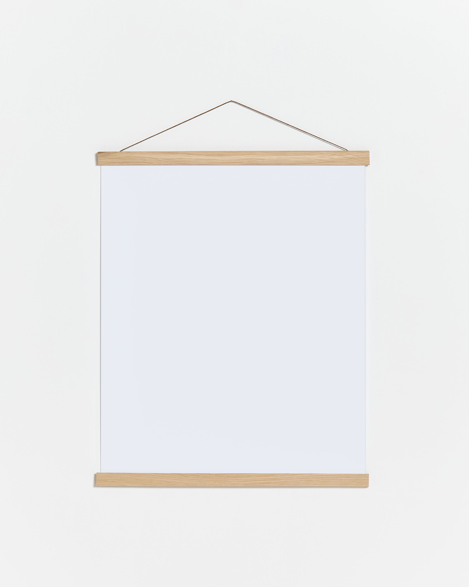 Porte-affiche en bois et couleur chêne. Grâce à ses aimants, vous pourrez accrocher vos affiches 30x40 cm, ou 40x30 cm en format horizontal,au mur sans être endommagé. Il comprend une corde marron assortie, que vous pouvez utiliser pour placer le cintre de votre choix. C'est une façon originale et belle d'accrocher vos œuvres préférées au mur et nous avons des cintres de toutes tailles disponibles sur notre site.