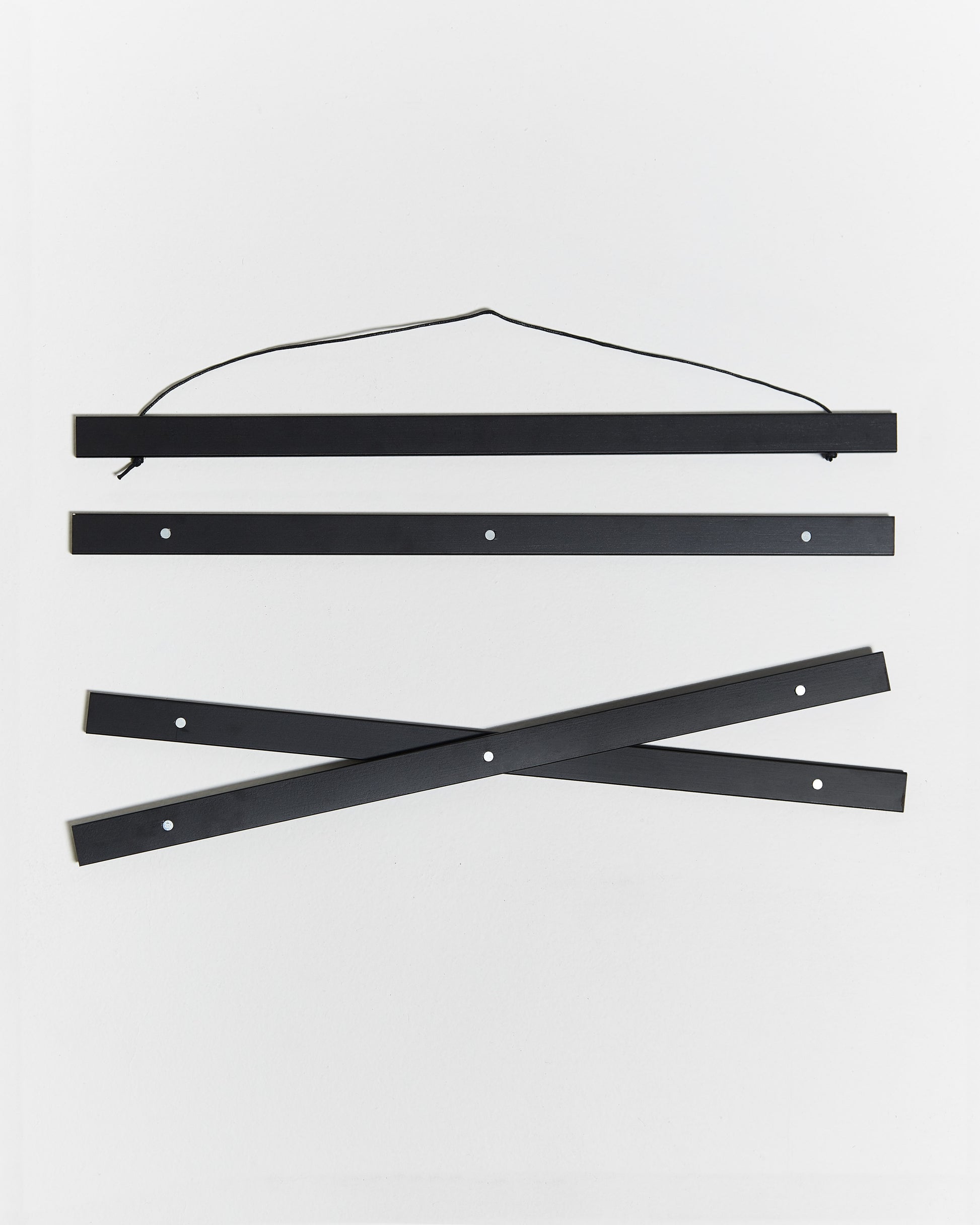 Porte-affiche en bois et couleur noir. Grâce à ses aimants, vous pourrez accrocher vos affiches 30x40 cm, ou 40x30 cm en format horizontal,au mur sans être endommagé. Il comprend une corde marron assortie, que vous pouvez utiliser pour placer le cintre de votre choix. C'est une façon originale et belle d'accrocher vos œuvres préférées au mur et nous avons des cintres de toutes tailles disponibles sur notre site.