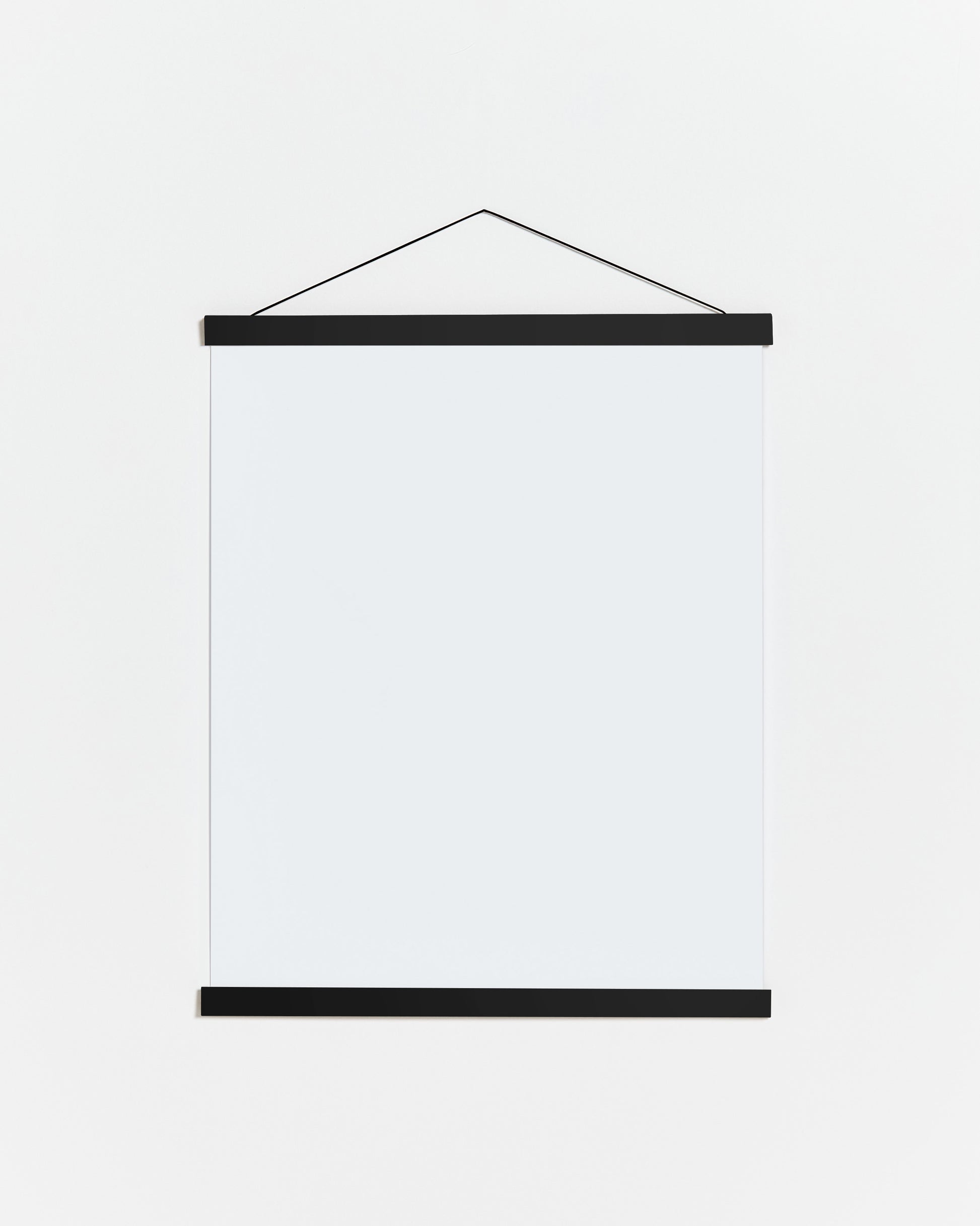 Porte-affiche en bois et couleur noir. Grâce à ses aimants, vous pourrez accrocher vos affiches 70x100 cm, ou 70x50 cm en format horizontal, au mur sans être endommagé. Il comprend une corde marron assortie, que vous pouvez utiliser pour placer le cintre de votre choix. C'est une façon originale et belle d'accrocher vos œuvres préférées au mur et nous avons des cintres de toutes tailles disponibles sur notre site.