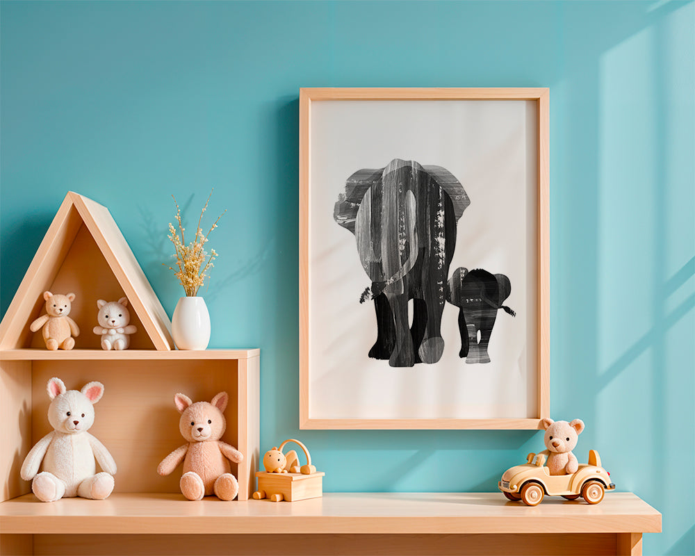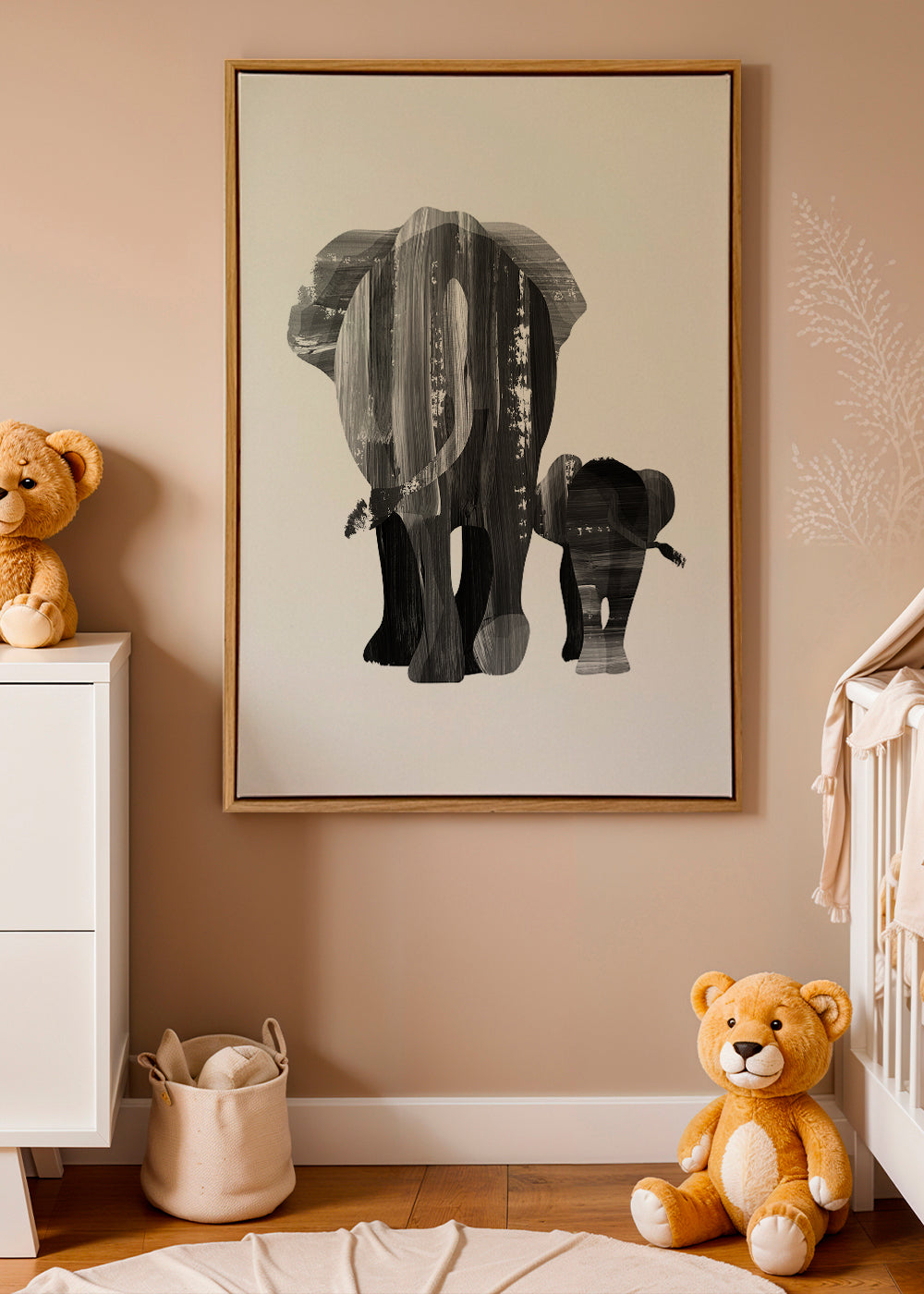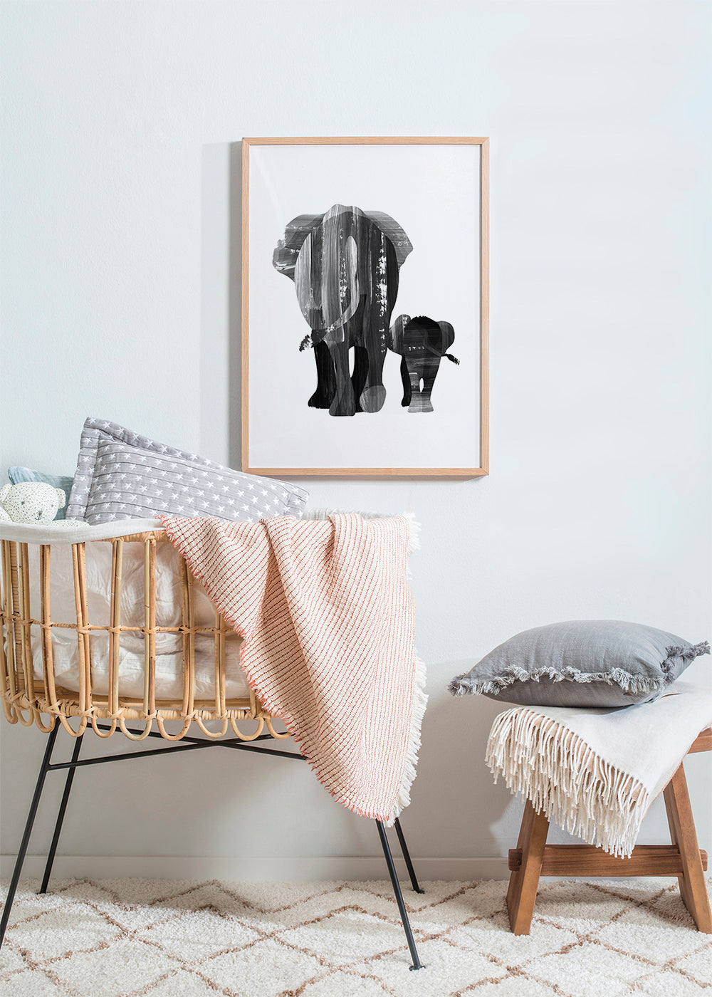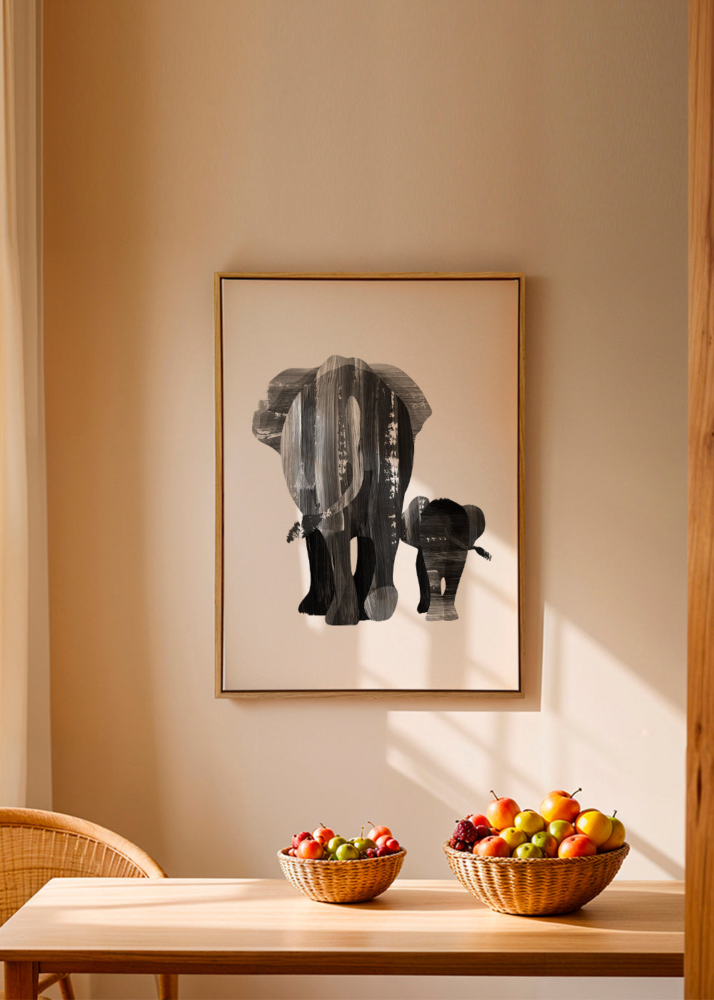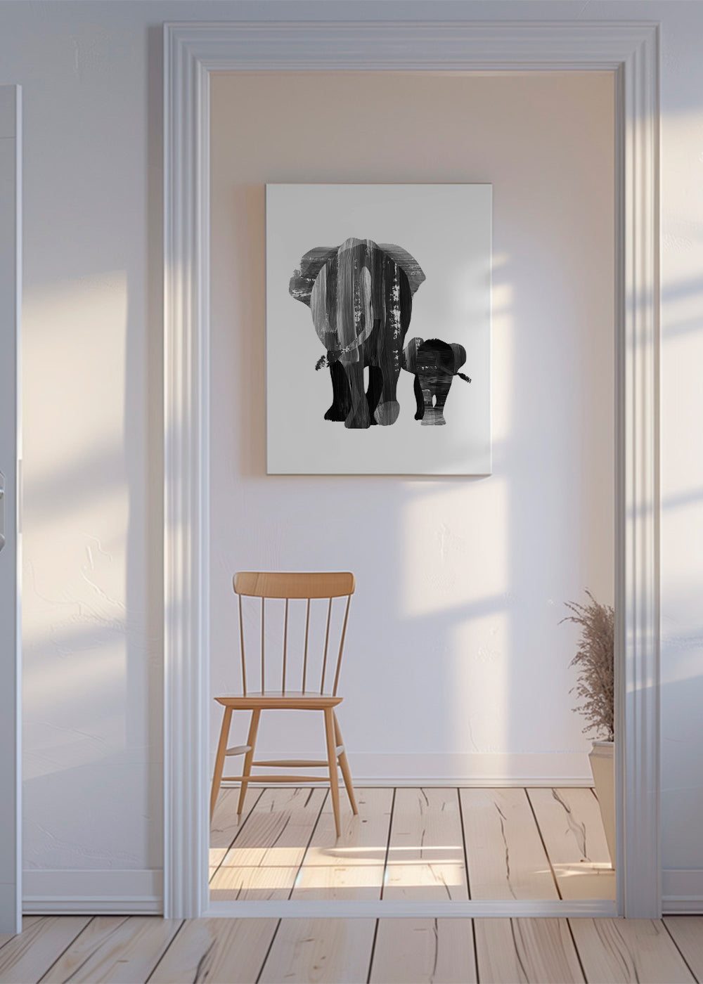 Un tableau de notre catégorie posters éléphant, de la collection de l'artiste Goed Blauw, en couleurs monochromes, et pour mettre en portrait. Les affiches d'animaux nous permettent de montrer notre côté le plus sauvage dans la décoration des murs. La touche ultime pour la décoration de votre maison.