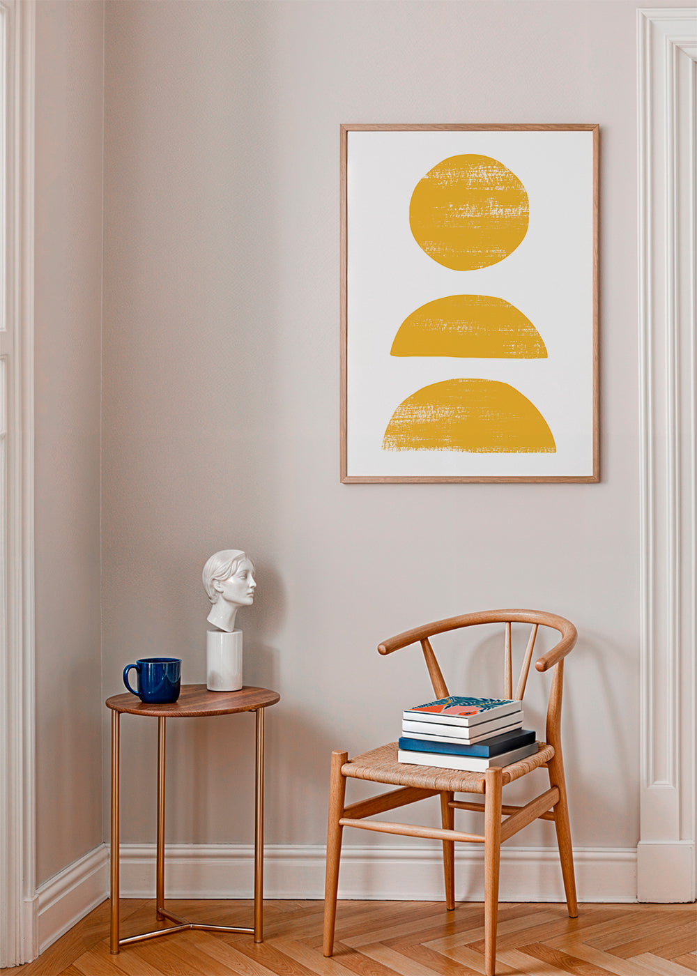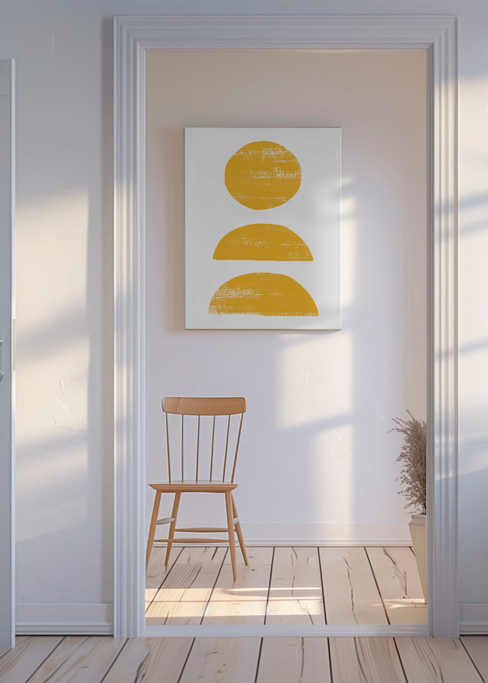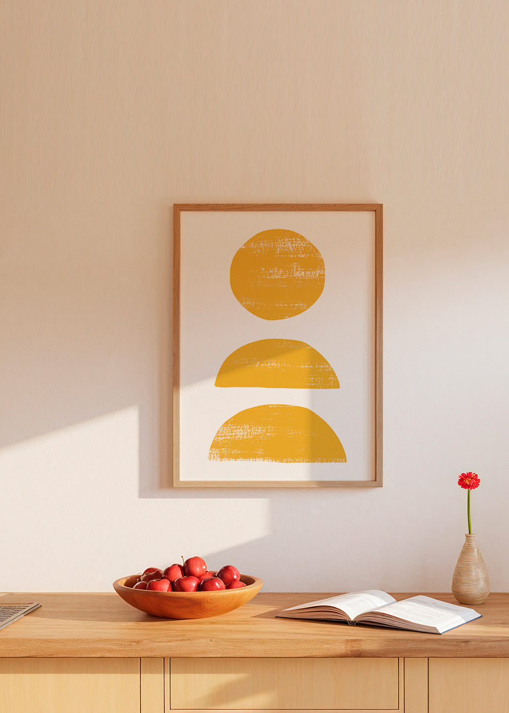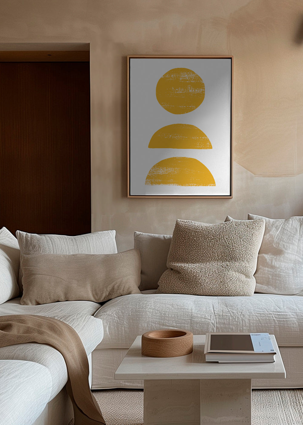 Une oeuvre du style de nos tableaux géométrique, original de Nouveau Prints, avec des nuances jaunes, et pour mettre en portrait. Cette œuvre aux formes abstraites est idéale à combiner avec les tableaux géométriques et l'art abstrait. Faites de votre maison un lieu plein de style.