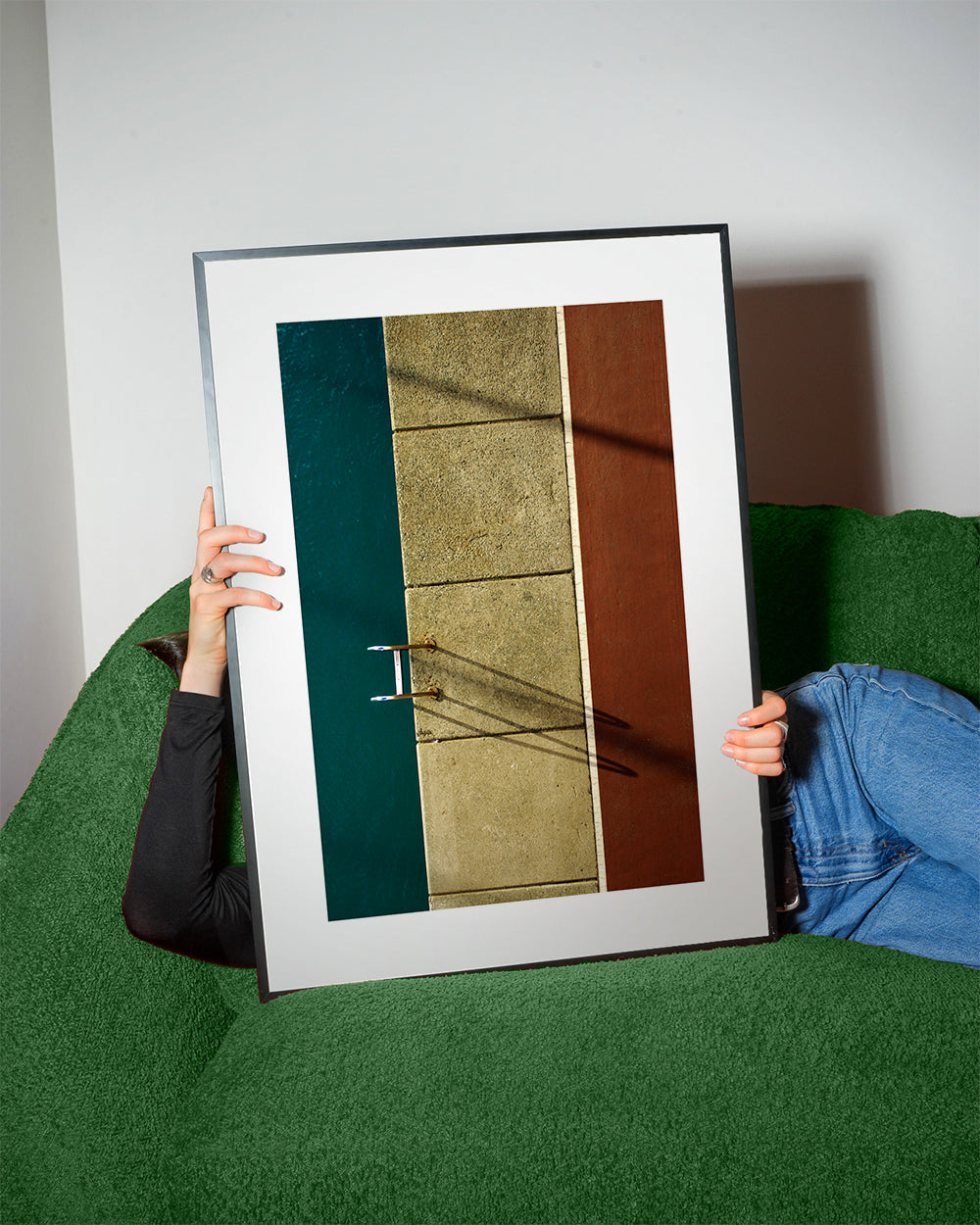 Le passe-partout est un panneau blanc mat qui entoure l'affiche pour la protéger du méthacrylate, et qui améliore également l'expressivité de l'œuvre et met en valeur ses détails.