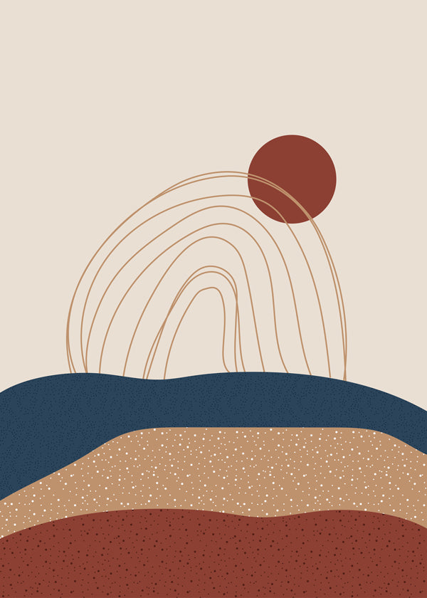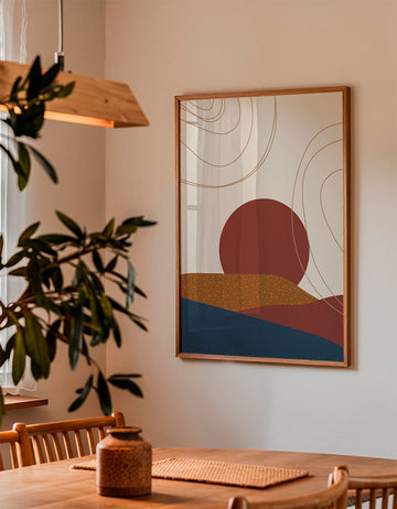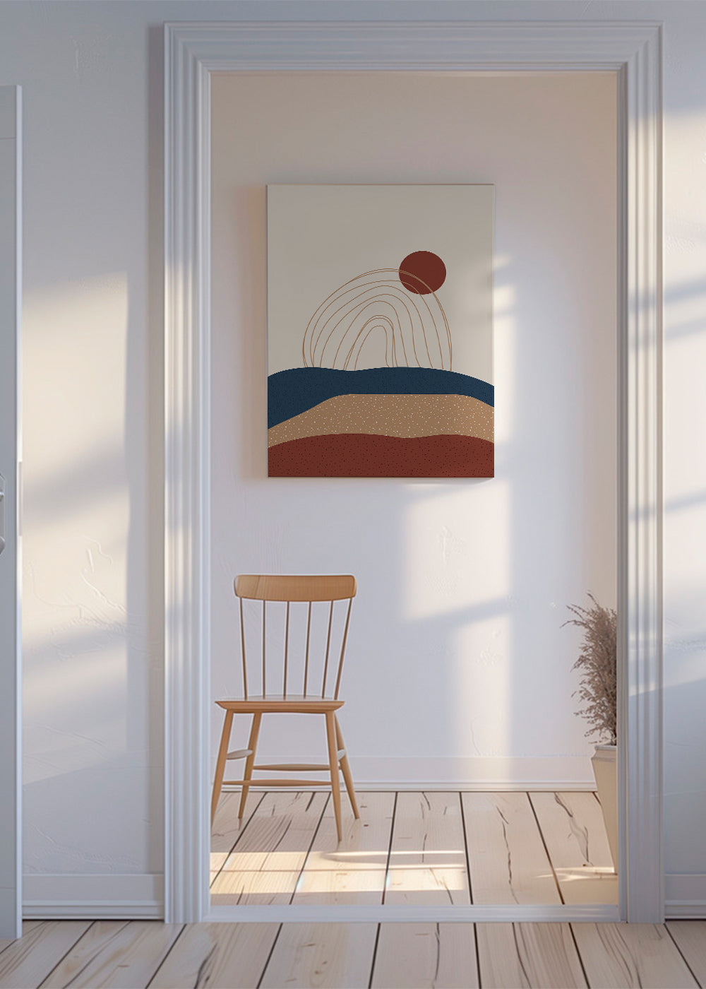 Ce tableau de notre collection tableaux des levers et couchers du soleil, faite par Essentially Nomadic, avec pigments rouges, et à mettre en portrait. Le calme et la liberté transmis par les tableaux de paysages sont uniques. Habillez les murs de votre maison.