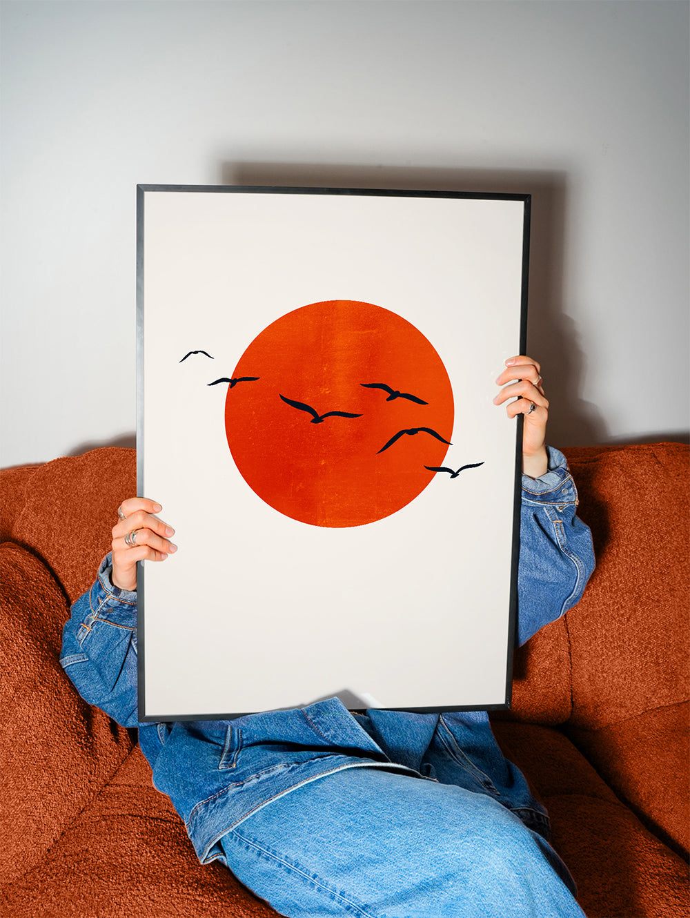 Un poster appartenant à la catégorie affiches oiseaux, conçue par Kubistika, dans des tons rouges, et en position portrait. Les tableaux de paysages sont spectaculaires, combinez-les avec des textes et des phrases pour créer d’incroyables compositions murales. Créez un environnement qui respire le design et la créativité.