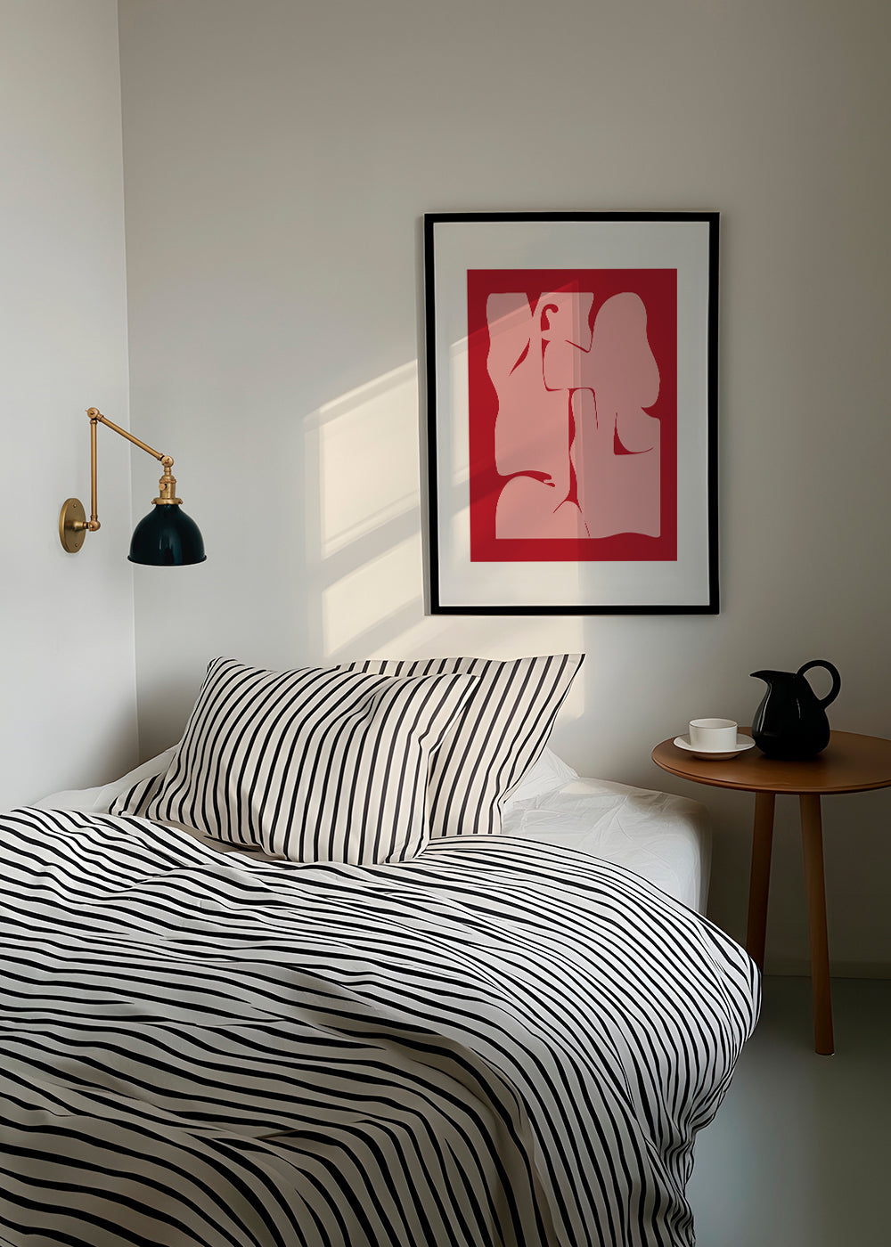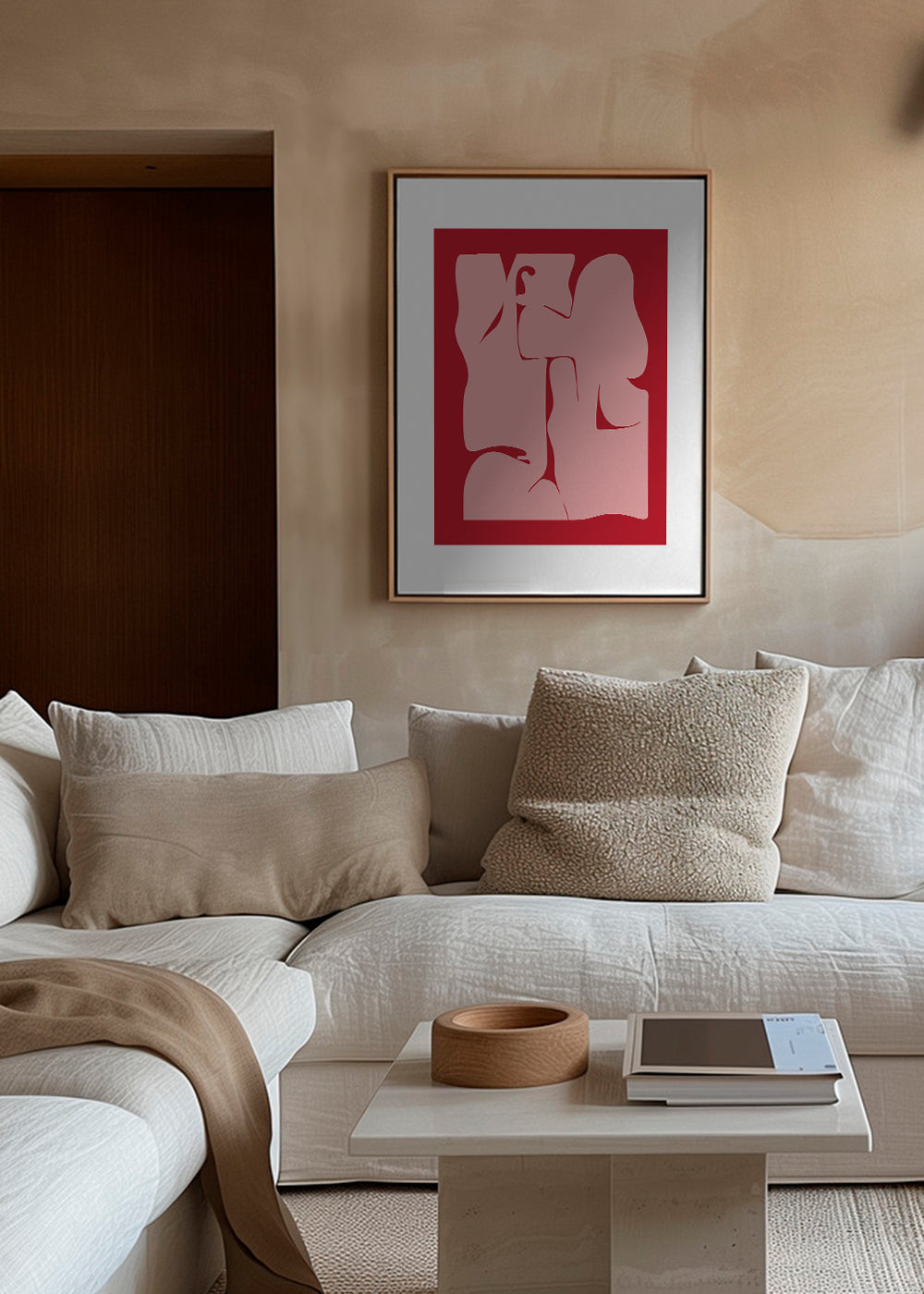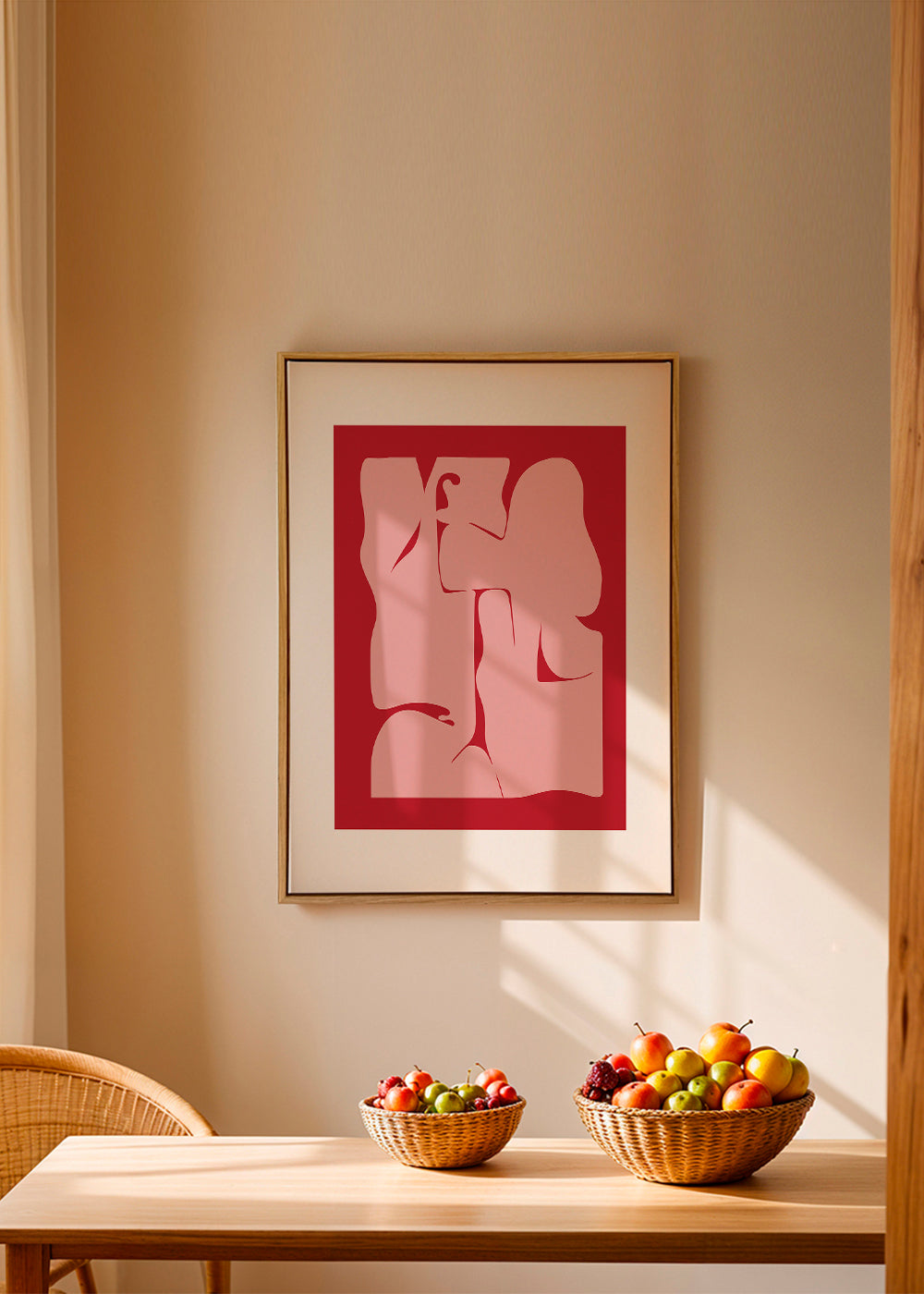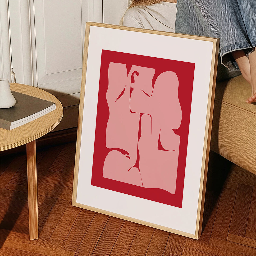 Une image de notre collection tableaux géométrique, original de Nordic Creators, avec pigments rouges, et en portrait. L'art géométrique est un style élégant pour décorer les murs de la maison. Créer des espaces spéciaux. Cette œuvre comprend une bordure blanche qui encadre le modèle pour en rehausser le style.