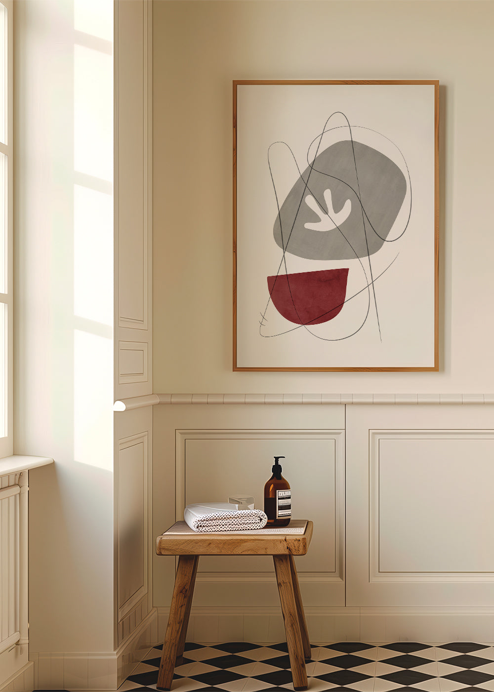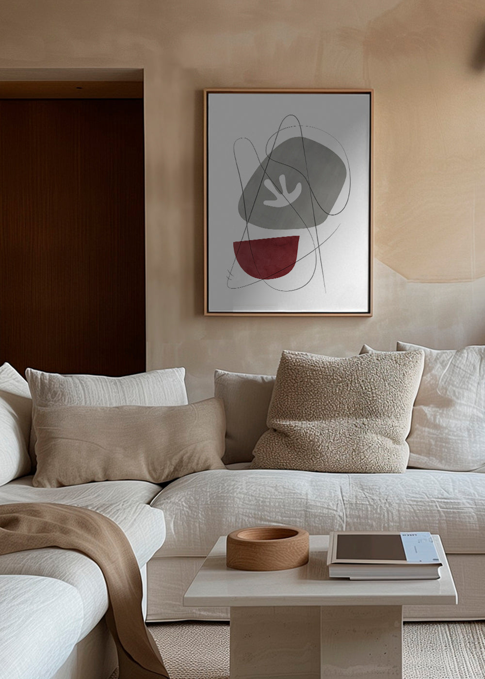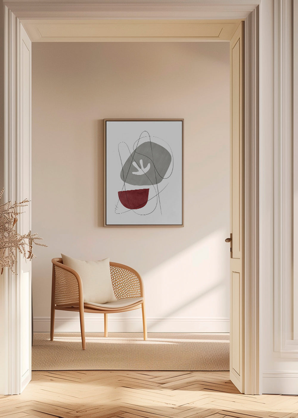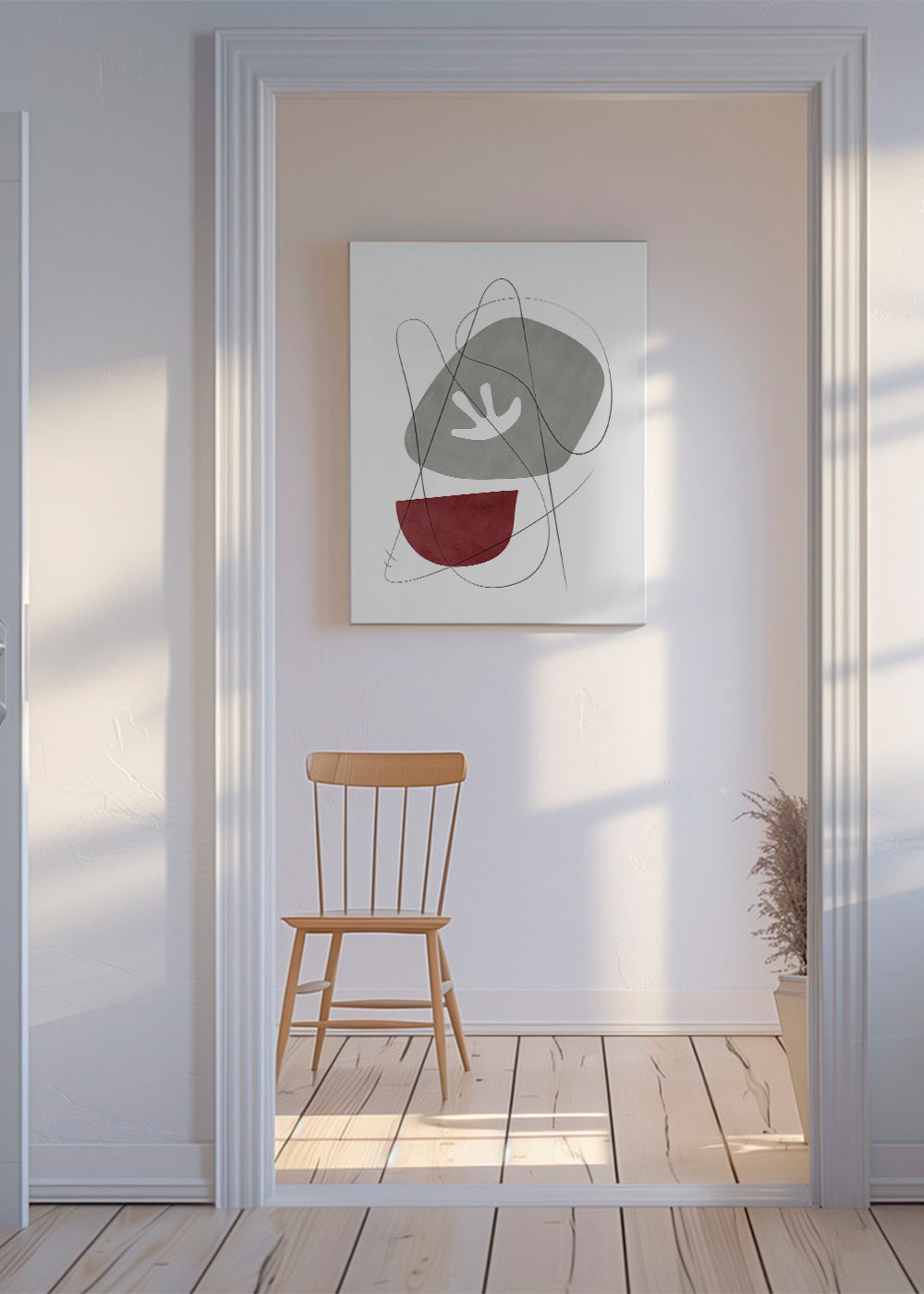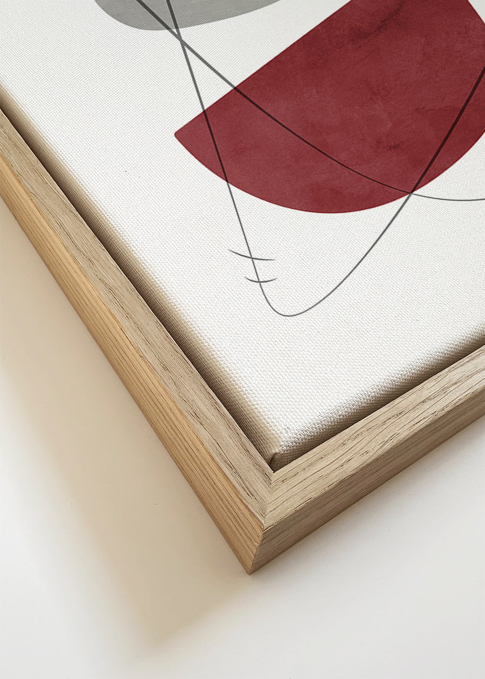 Ce modèle du style de nos tableaux géométrique, conçue par Nouveau Prints, dans des tons rouges, et en position portrait. Cette œuvre aux formes abstraites est idéale à combiner avec les tableaux géométriques et l'art abstrait. Changez l'aspect d'une pièce en ajoutant simplement des tableaux aux murs.
